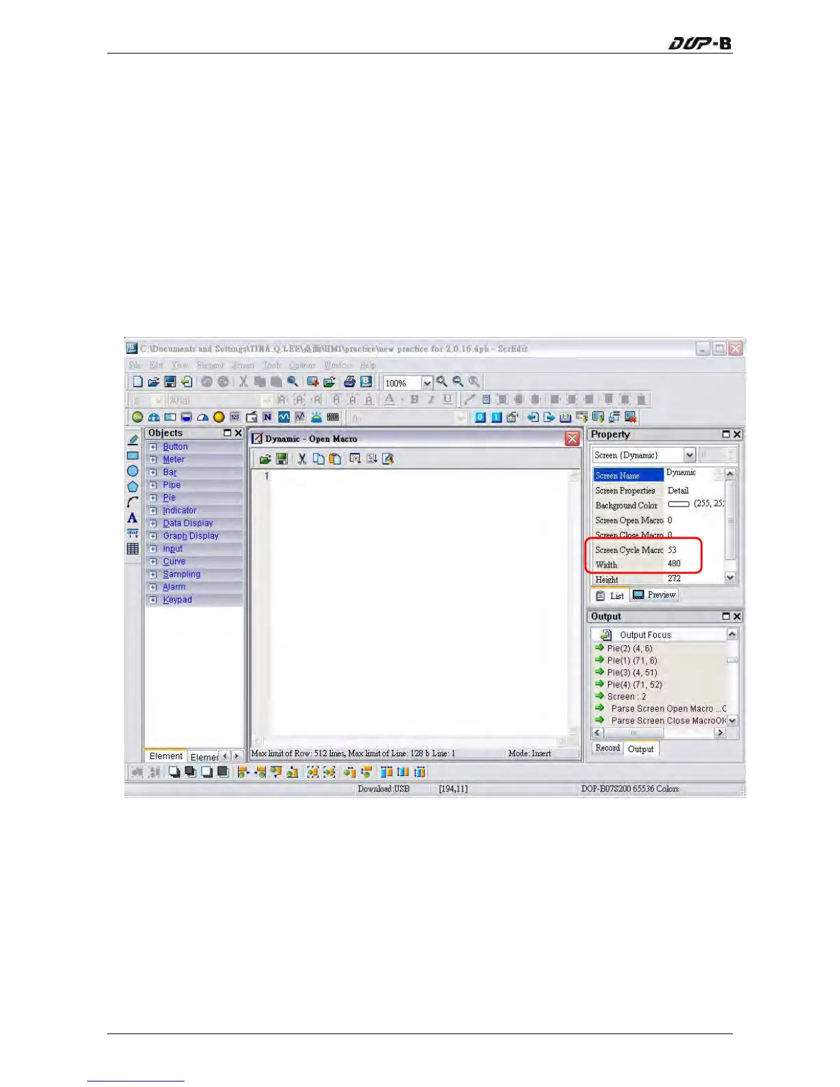 once opening screen occurs. The user also can click the Screen Open Macro, Screen Clos