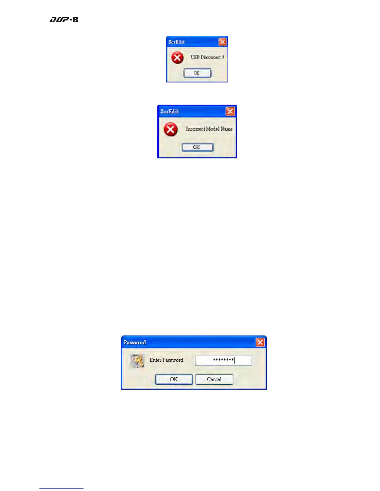 After clicking File > Upload Screen & Recipe, the password dialog box will show up first (Fig.