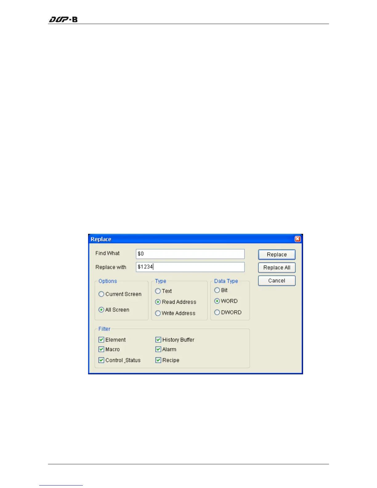 the replace criteria are Element, Macro, Control Block, Status Block, History