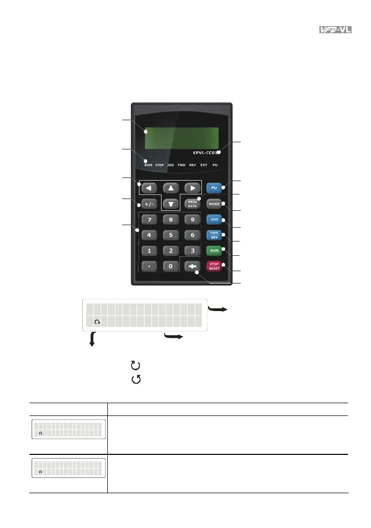 The digital keypad is the display of VFD-VL series. The following keypad appearance is only for