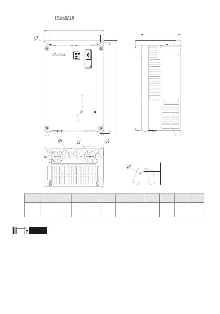 Frame D: VFD150VL23A/43A, VFD185VL23A/43A, VFD220VL23A/43A