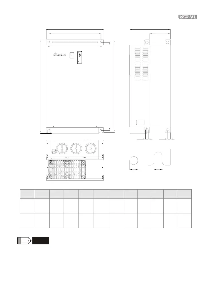 Frame E2: VFD300VL23A, VFD370VL23A, VFD550VL43A, VFD750VL43A