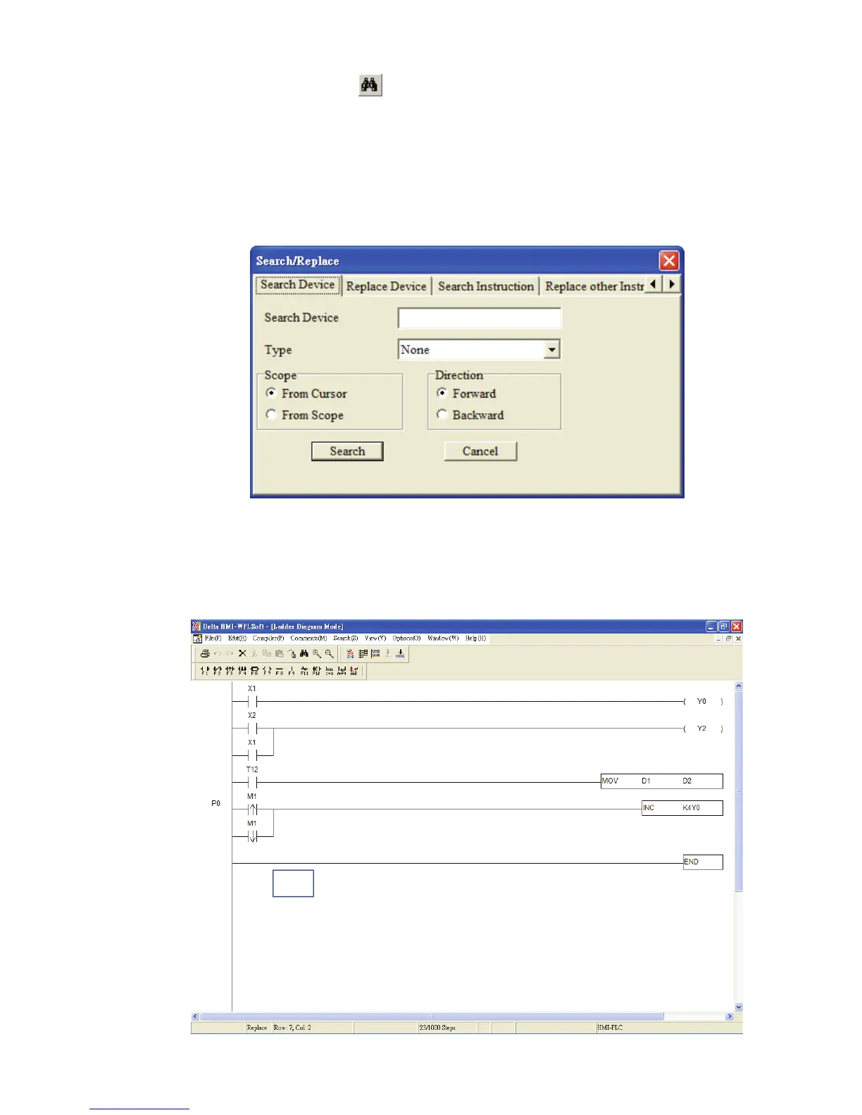 dialog box will appear. There are “Search Device”, “Replace Device”, “Search