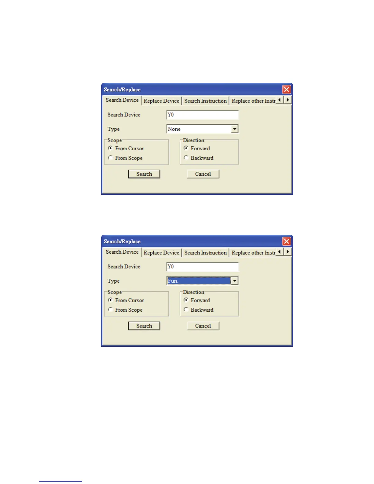 However, if enter the device name “Y0” in the field of “Search Device” still, but change
