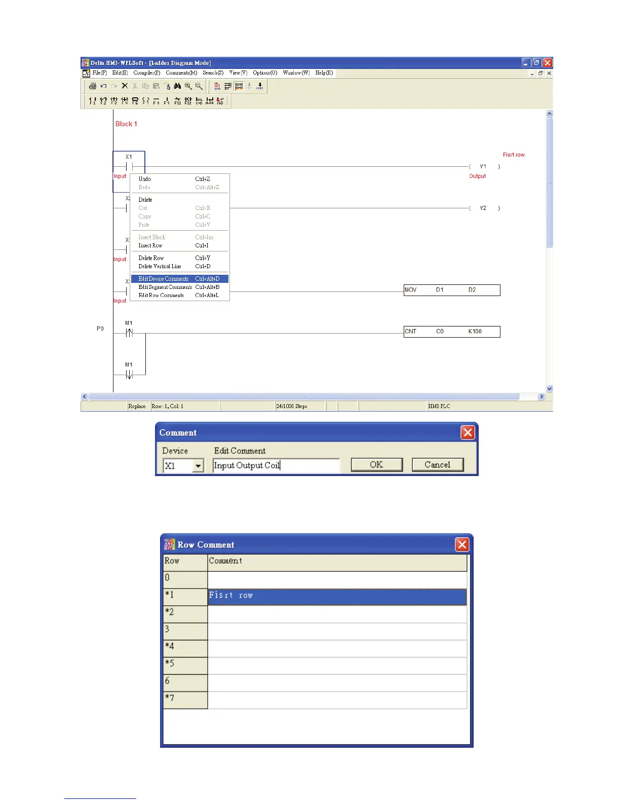 Edit Row Comments: (Only for ladder diagram mode)