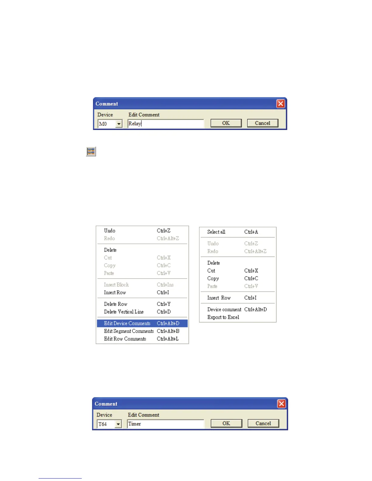2. Choose “Edit Device Comments” from the pop-up menu, and the Comment dialog box will