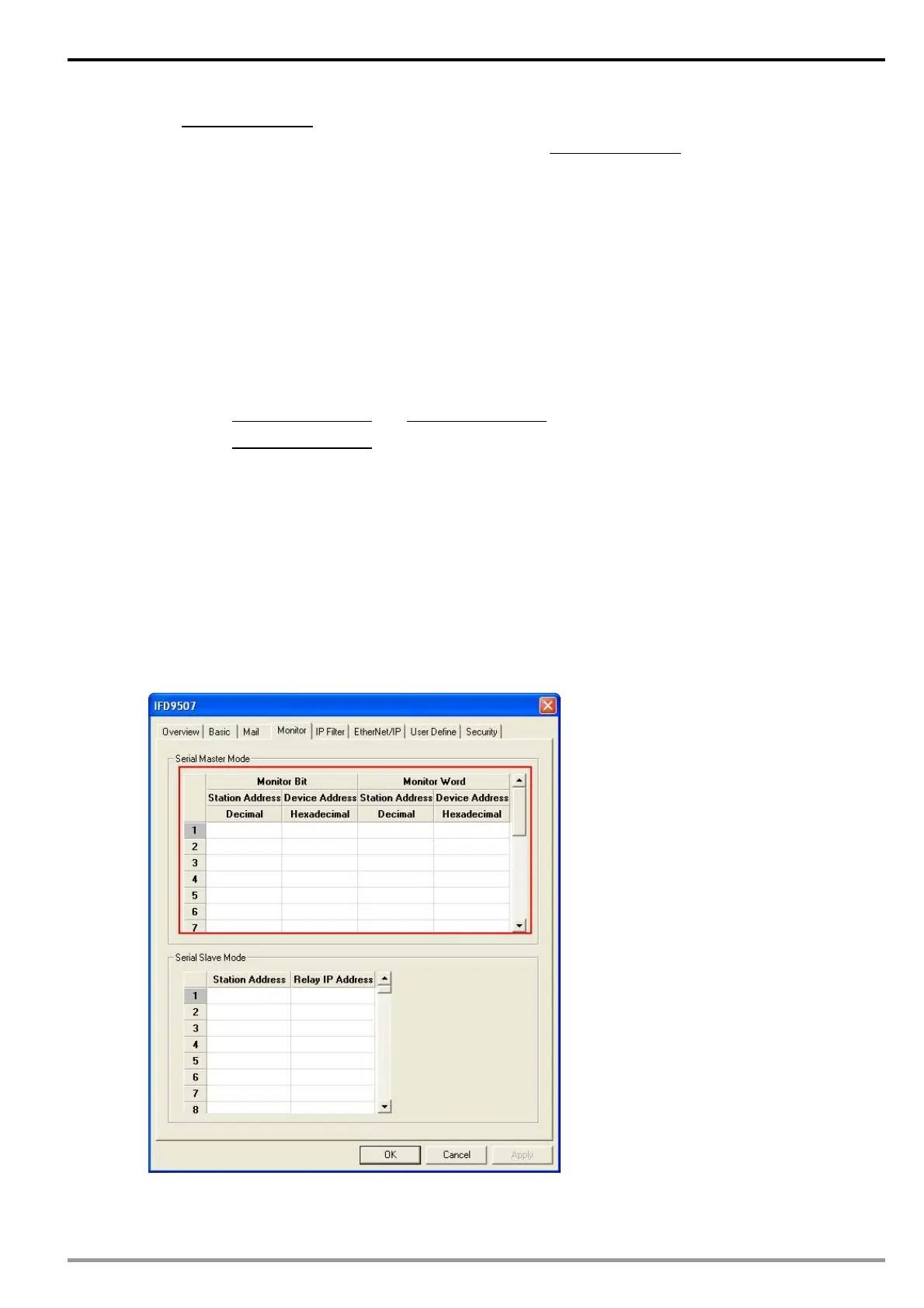 Device addresses for setting up the bit status of serial slave; able to read the content in the