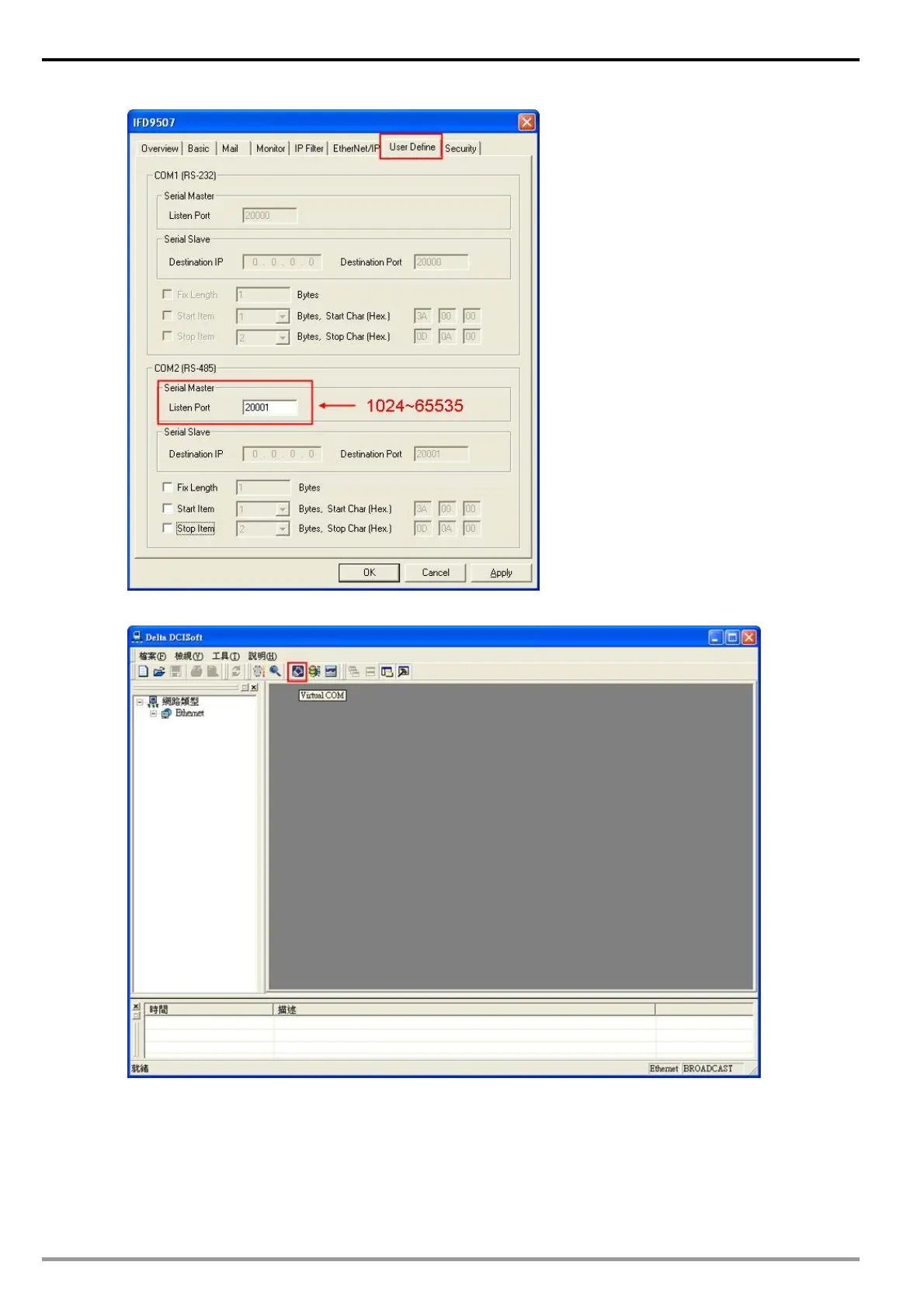 Open Virtual COM setup page.