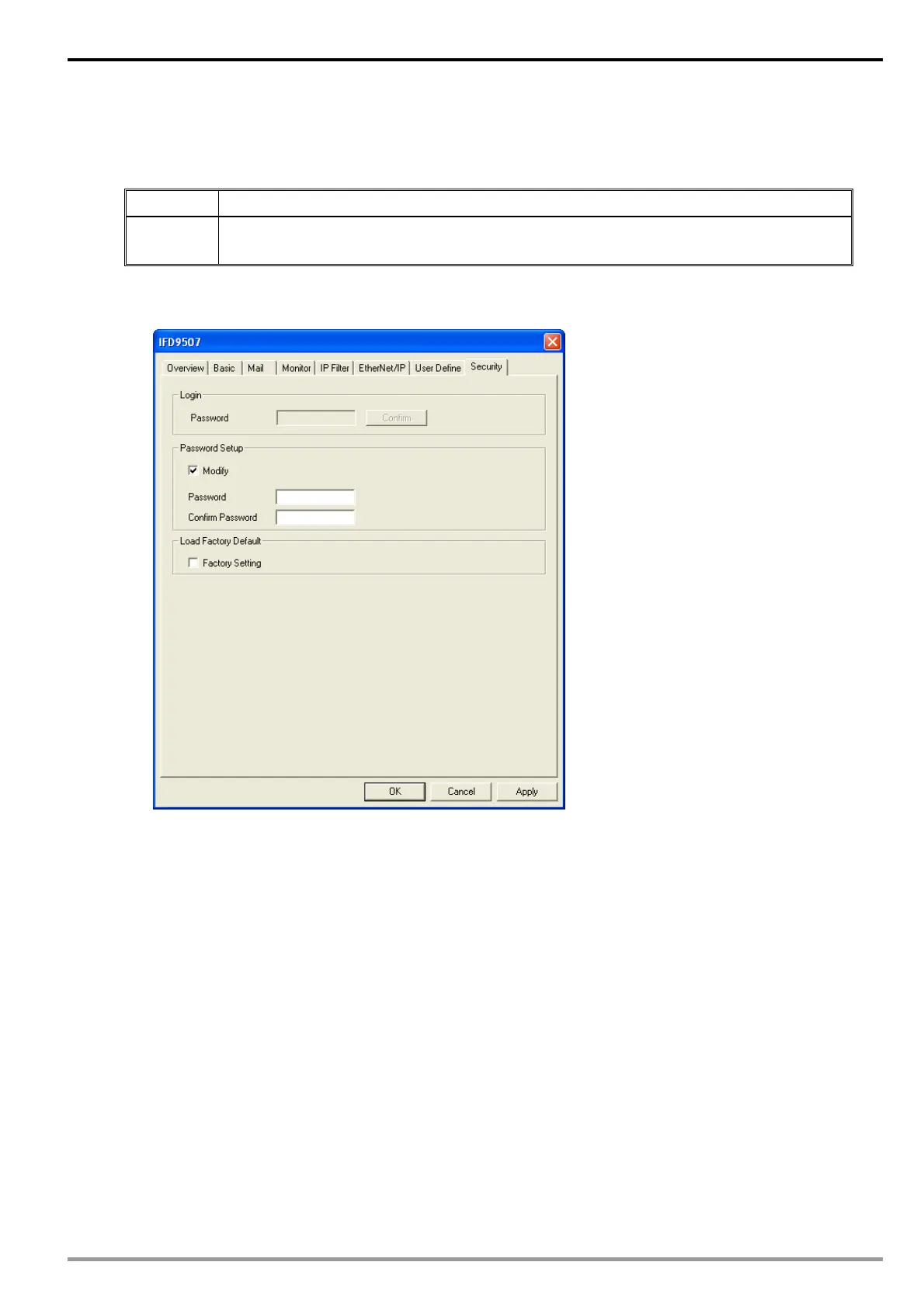 Application Setting up password by IFD9507 configuration