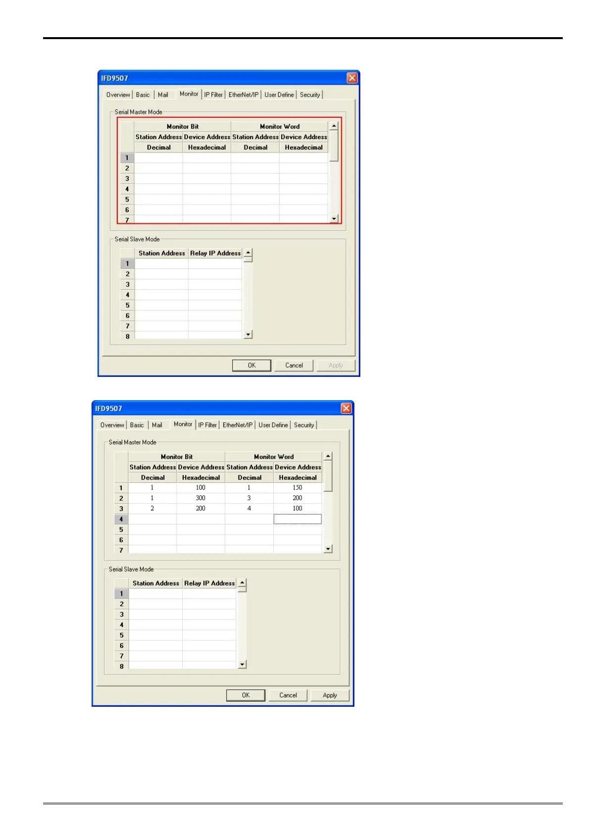 When the cache mode is enabled, you do not need to modify the station address and device address.