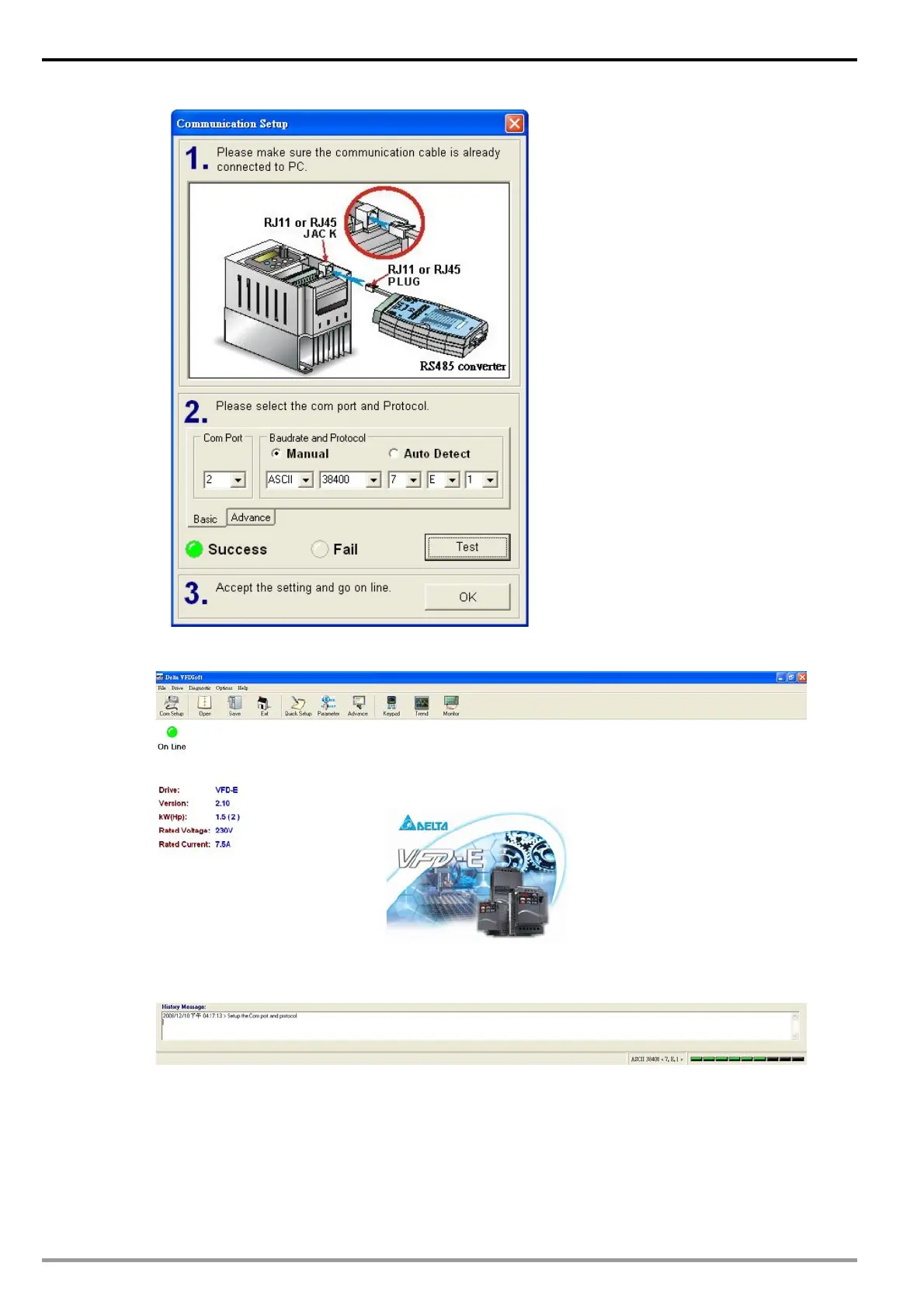 Press “OK”, and IFD9507 will be able to communicate with VFD-E by VFDSoft.