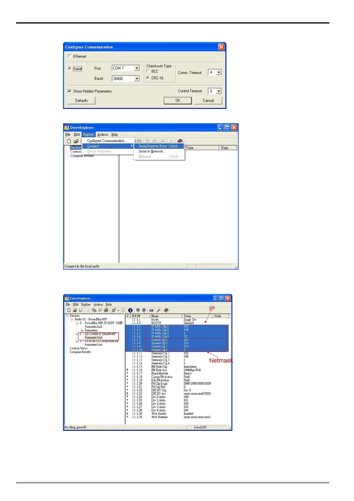 5. Select “Parameter List” in 22-COMM-E Ethernet/IP and enter “IP” in IP Addr Cfg1~Cfg4 and