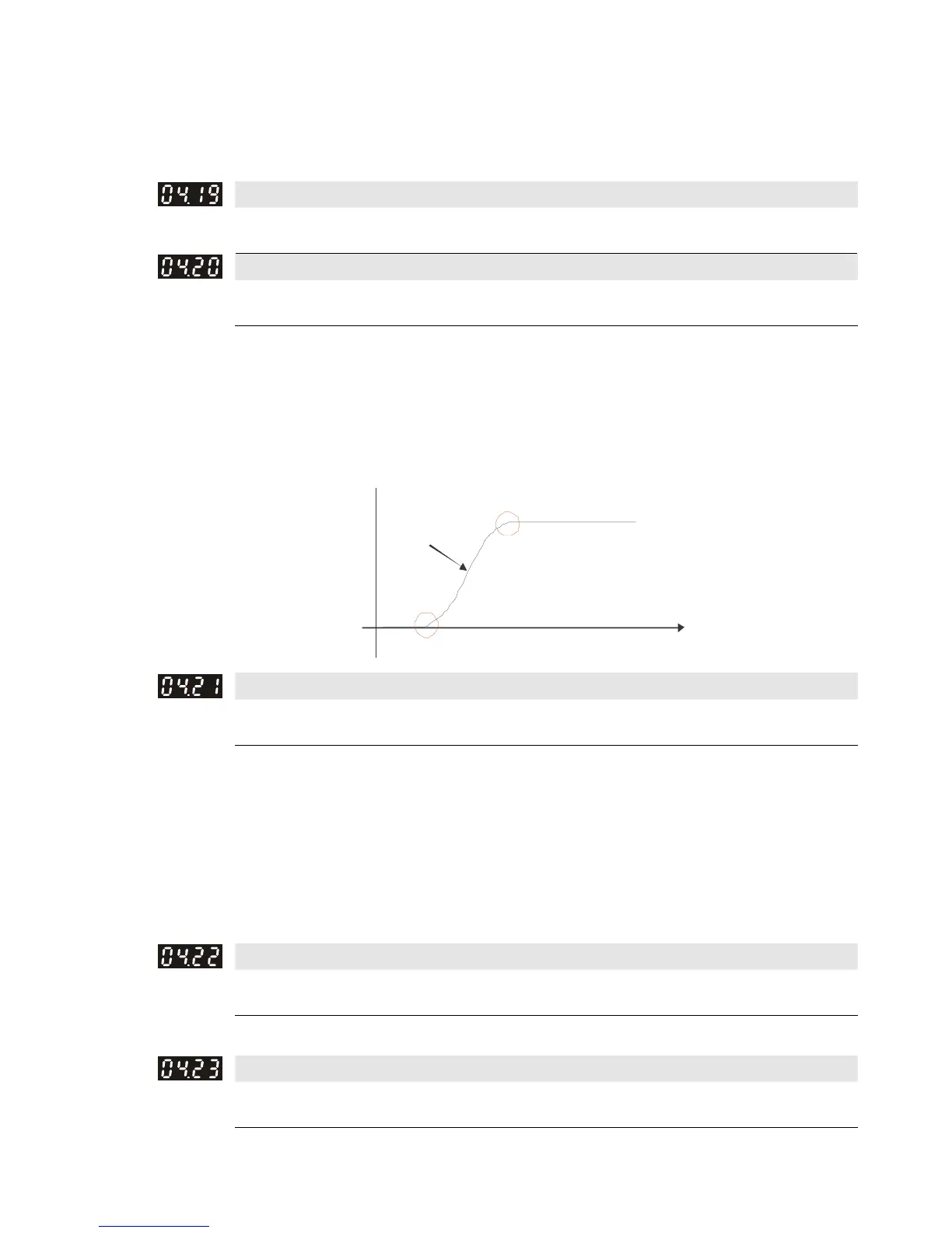 deceleration curve by original acceleration and deceleration time. Setting Pr.04-19=0.0 or Pr.04-20=0.0