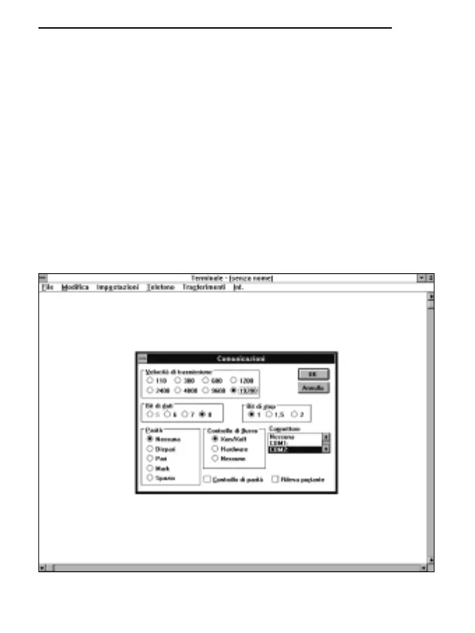 * the COMMUNICATIONS window for setting the communication procedures will appear on