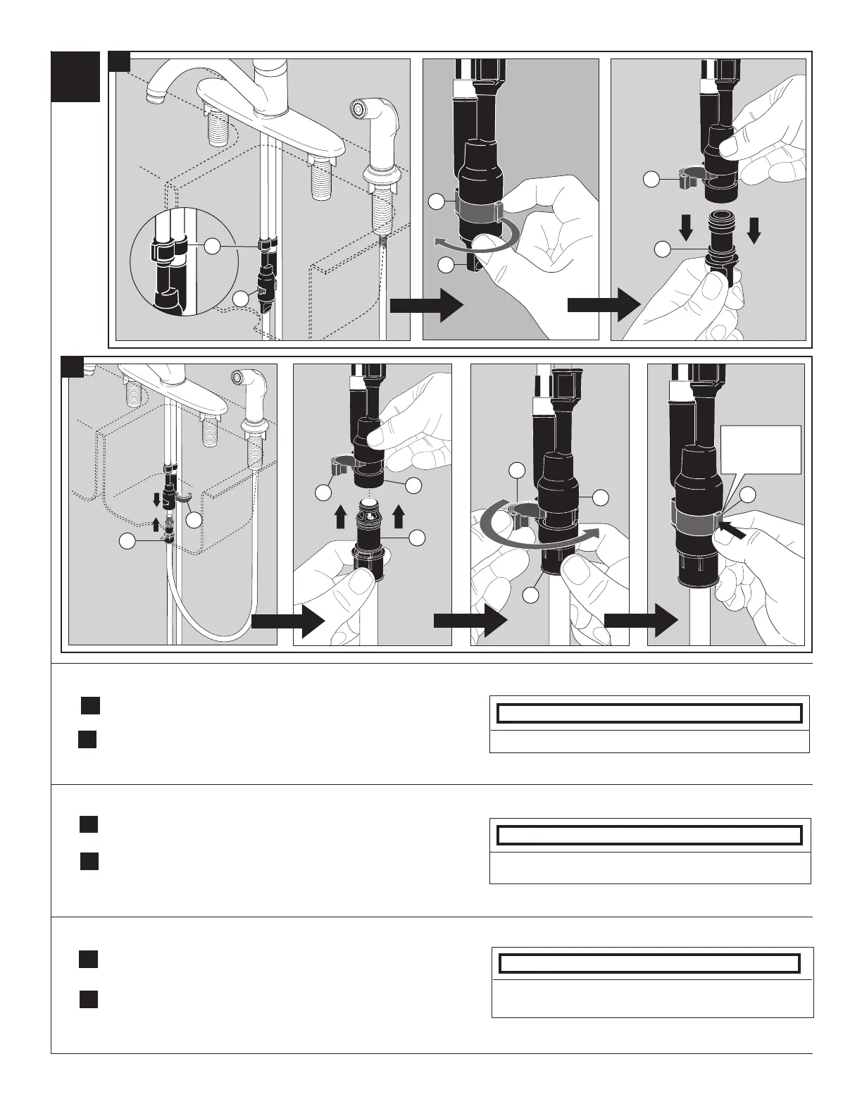 Keeping lower clip (1) disengaged, insert diverter hose end (4) into diverter