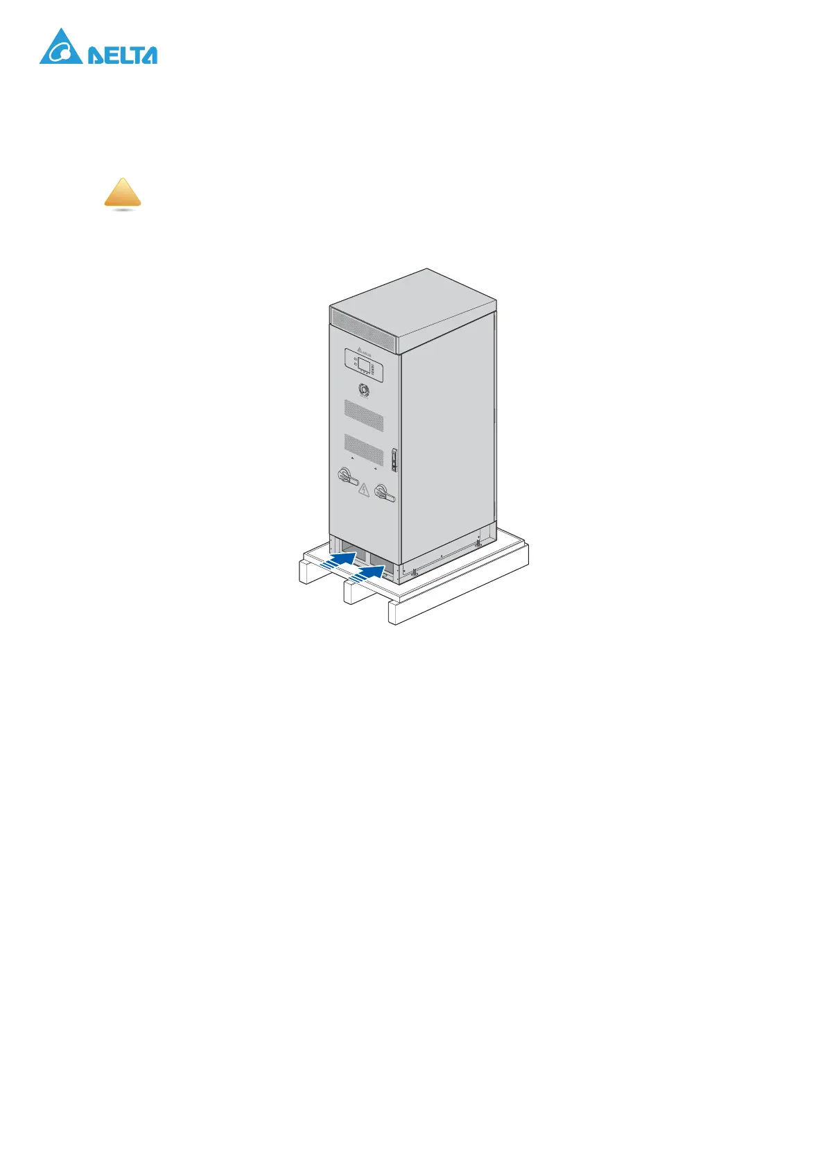 d. Align the forklift with the bottom channels on the cabinet, see the following image.