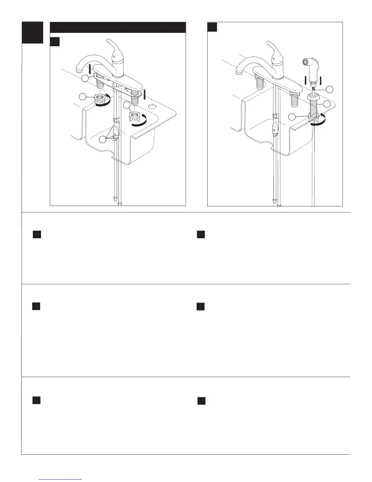 Mount the spray support (1) in far right hole in sink. Hand tighten nut (2).