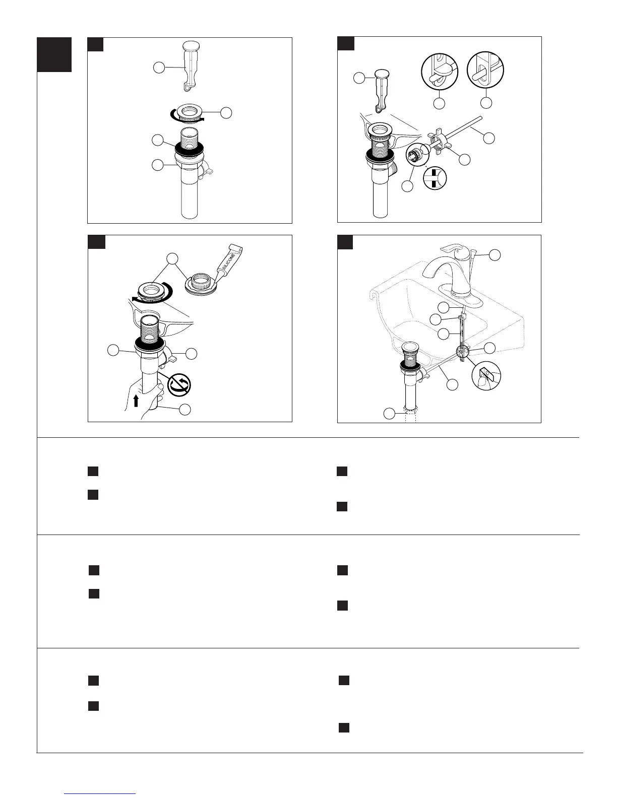 la collerette (1). Introduisez le corps (2) dans l’évier. Le trou du pivot (3)