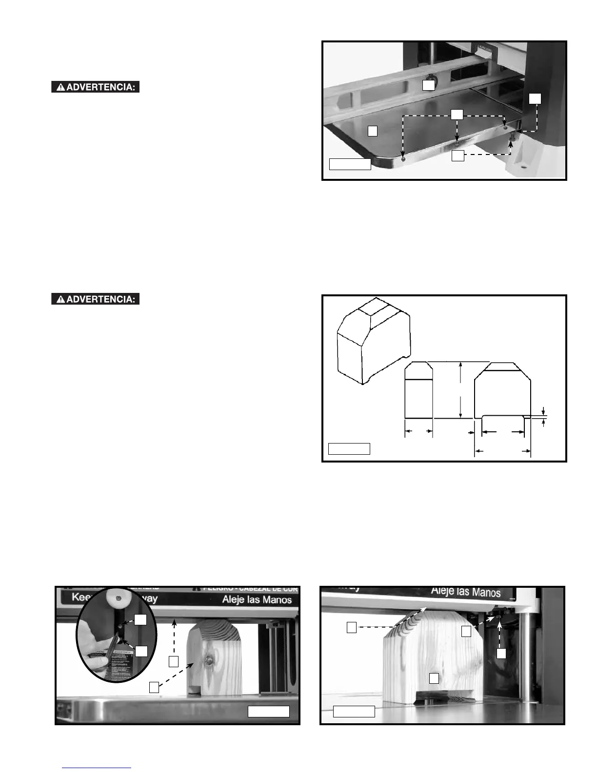 estar niveladas con la mesa de la cepilladora. Para verificar
