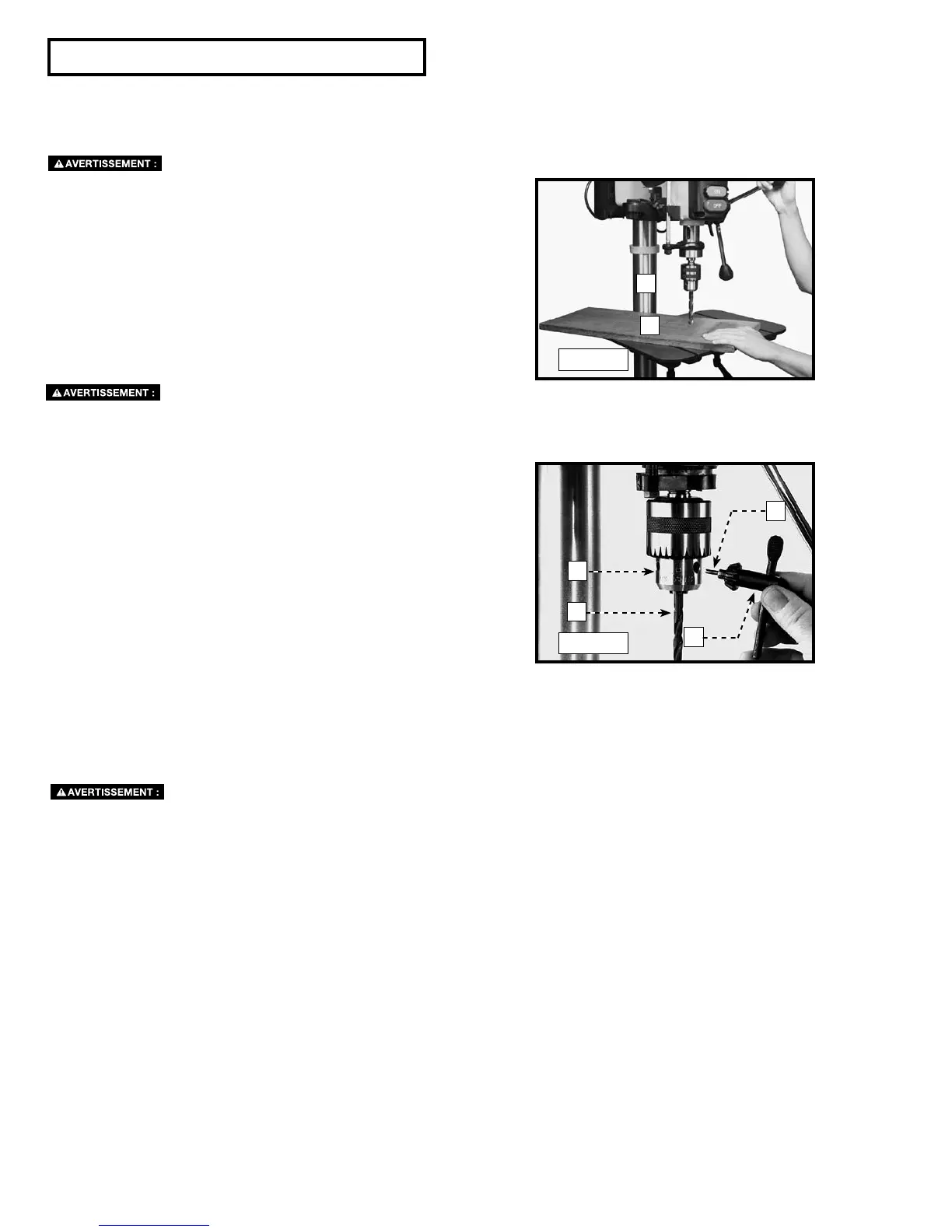 Utiliser la vitesse recommandée pour le foret de la perceuse à colonne et la pièce.