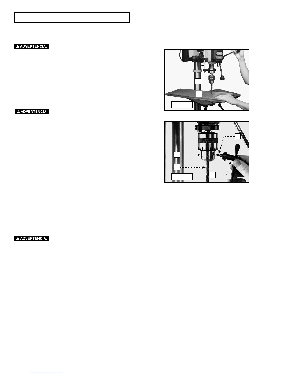 Use la velocidad recomendada para la pieza de trabajo y la broca de la prensa de taladro.