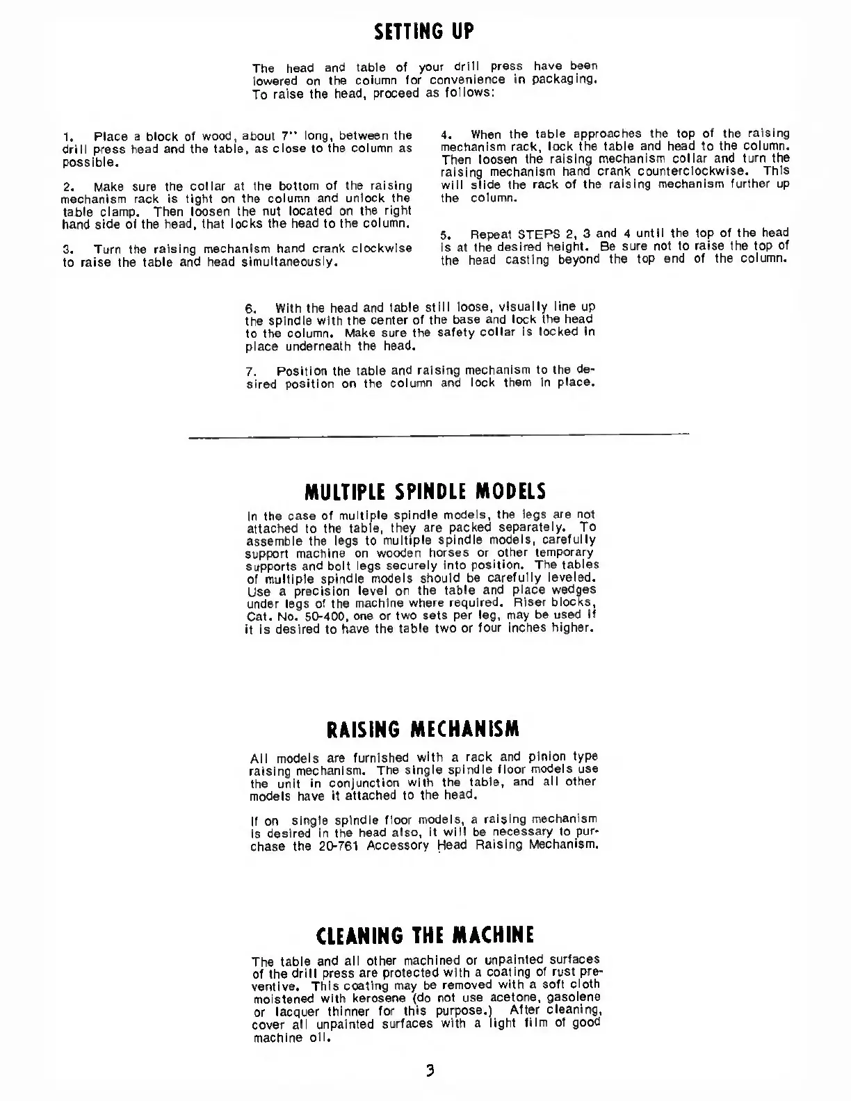 Delta 2000 Series - Multiple Spindle Models; Raising Mechanism; Cleaning the Machine