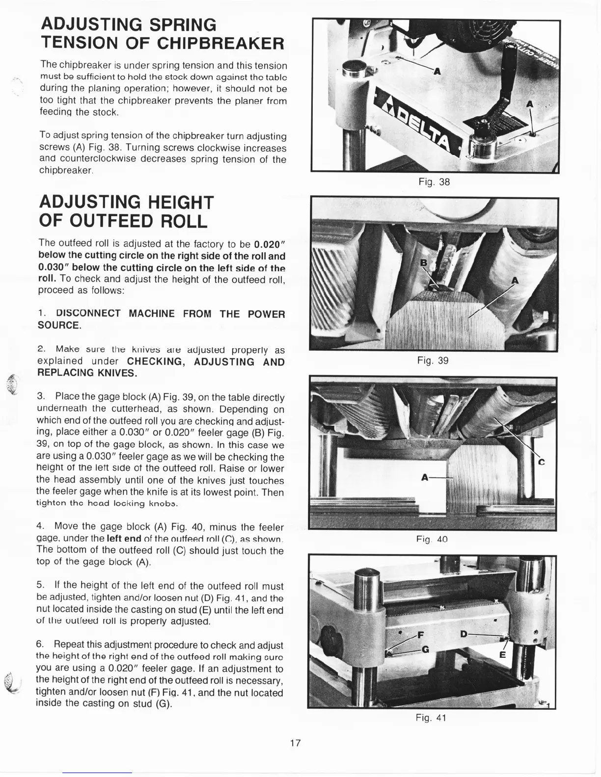 Delta 22-660 - Adjusting Spring Tension of Chipbreaker; Adjusting Height of Outfeed Roll