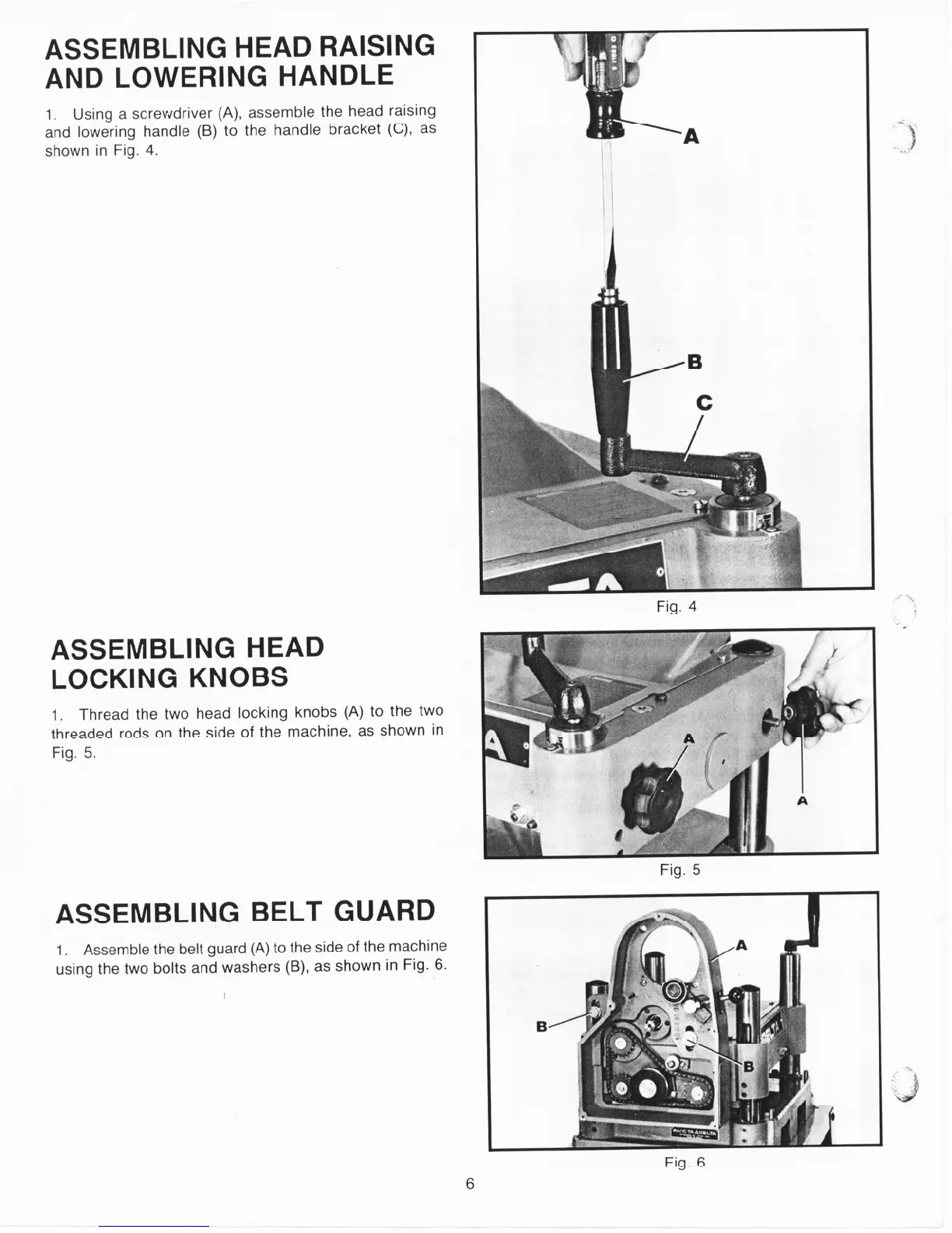 Delta 22-660 - Assembling Head Raising and Lowering Handle; Assembling Head Locking Knobs; Assembling Belt Guard