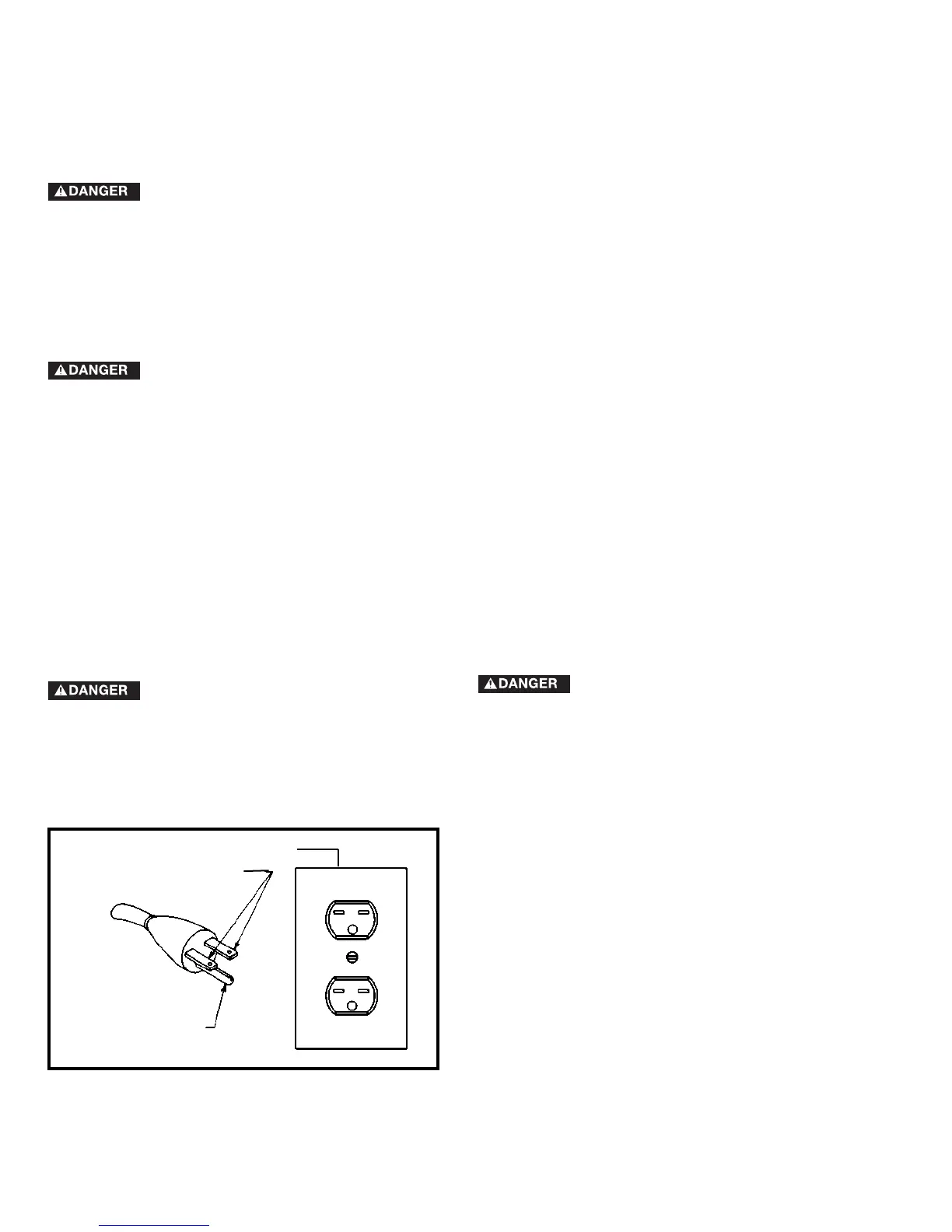 prong grounding type plugs and matching receptacle which will accept the machine’s plug. Before connecting the