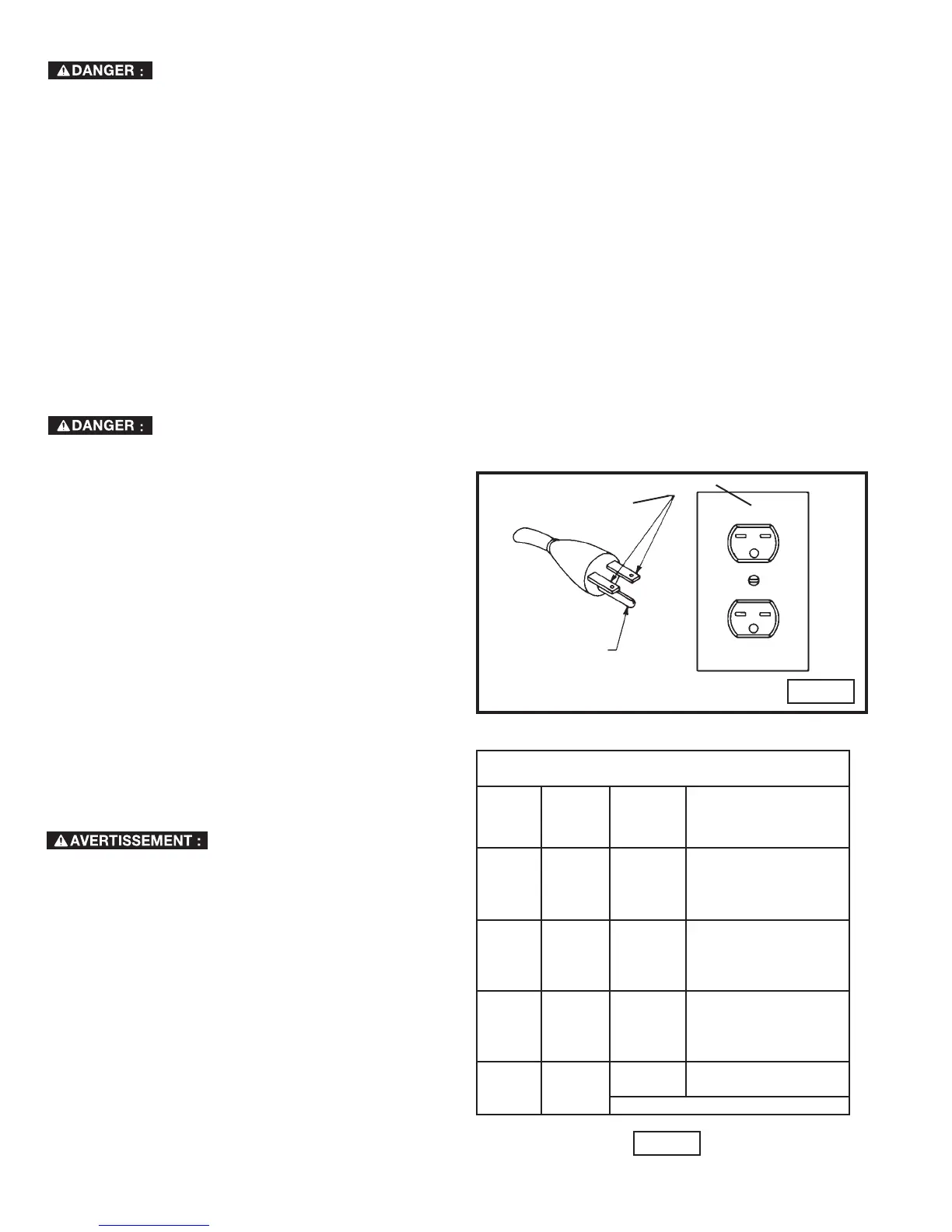 instructions de mise à la terre, ou si l’on doute que la machines oit correctement mise à la terre.