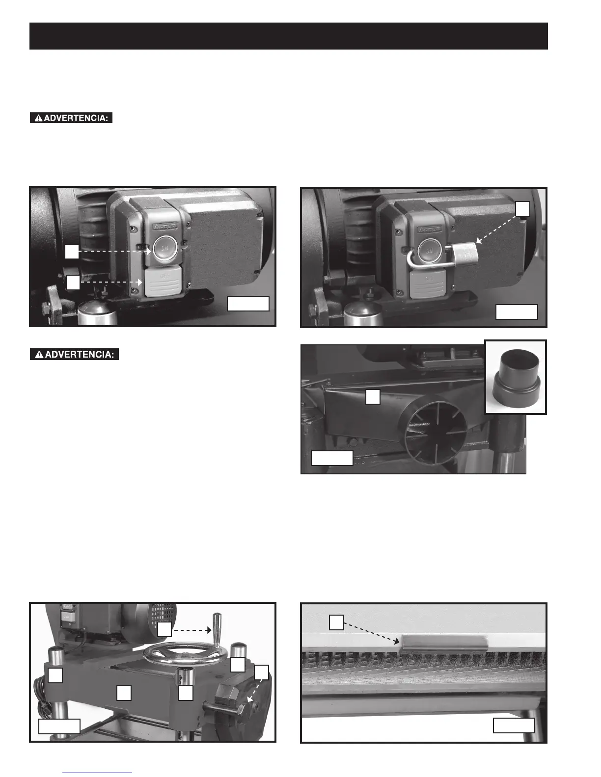 del cabezal. Girarlo en sentido contrario a las agujas del reloj lo baja). Ajuste las dos perillas de bloqueo del conjunto del