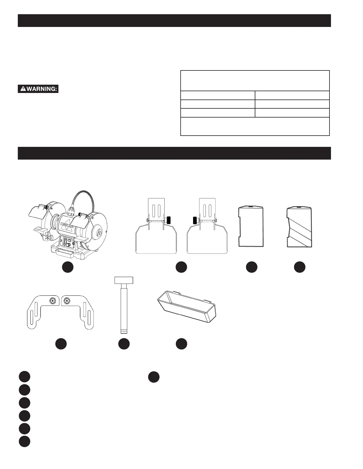 Compare all parts to the list below and check that all parts are present and in good condition. Report any missing or damaged parts