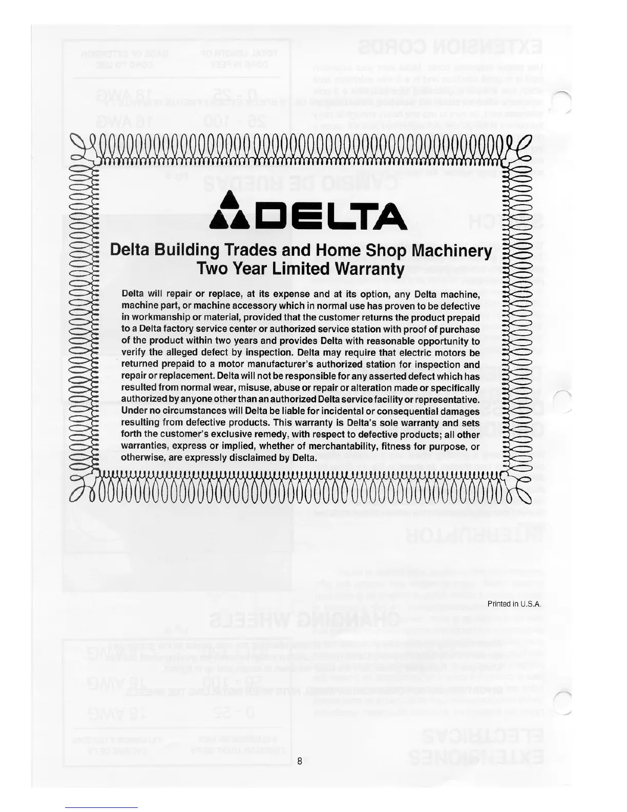 Delta 23-580 - Manufacturer Warranty