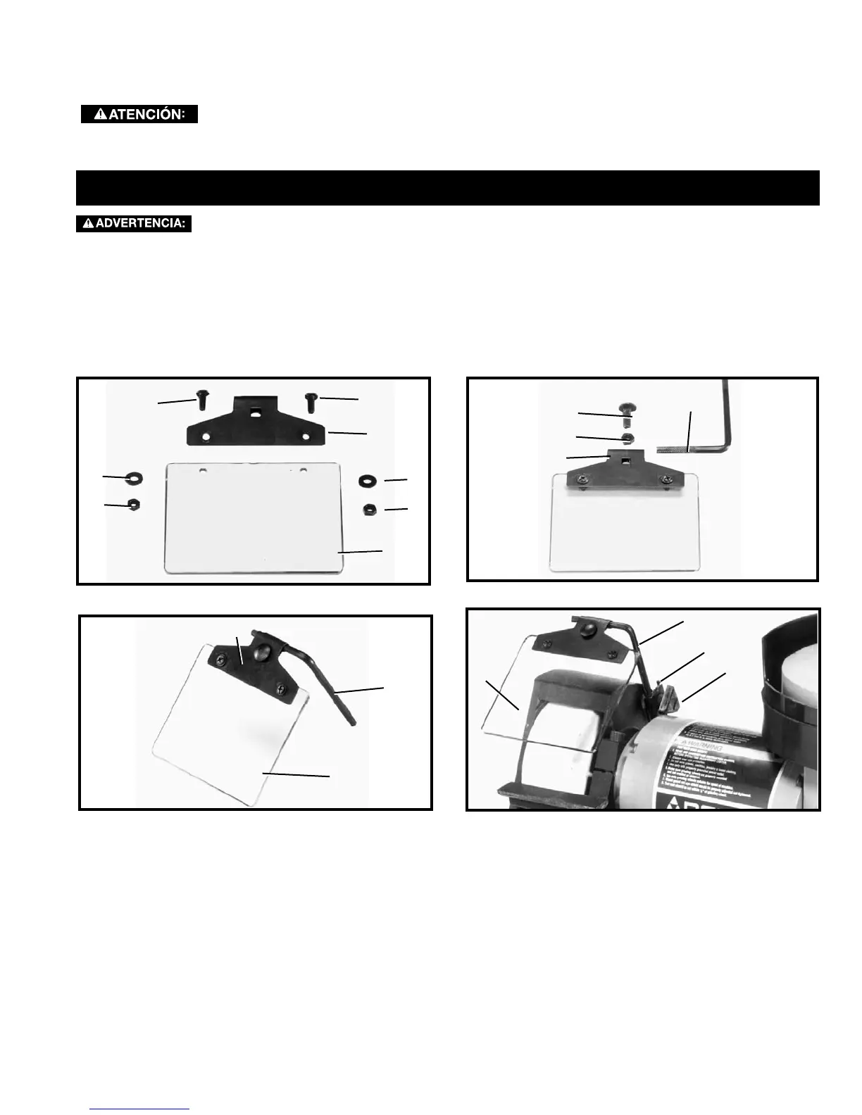 (A) con los orificios del marco (B) y ajuste el protector ocular al marco con dos tornillos de cabeza redonda de 13