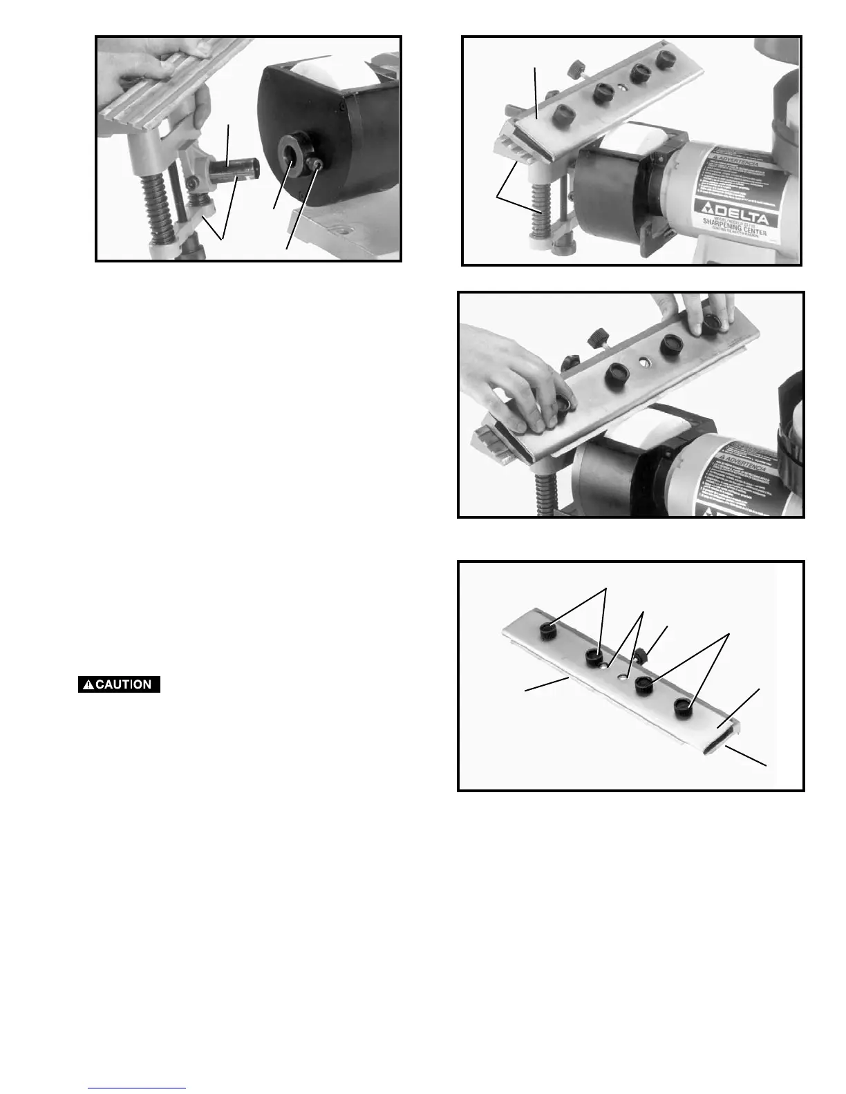 del soporte de herramientas deslizante, ajuste los dos tornillos (E) y las cuatro perillas (A).