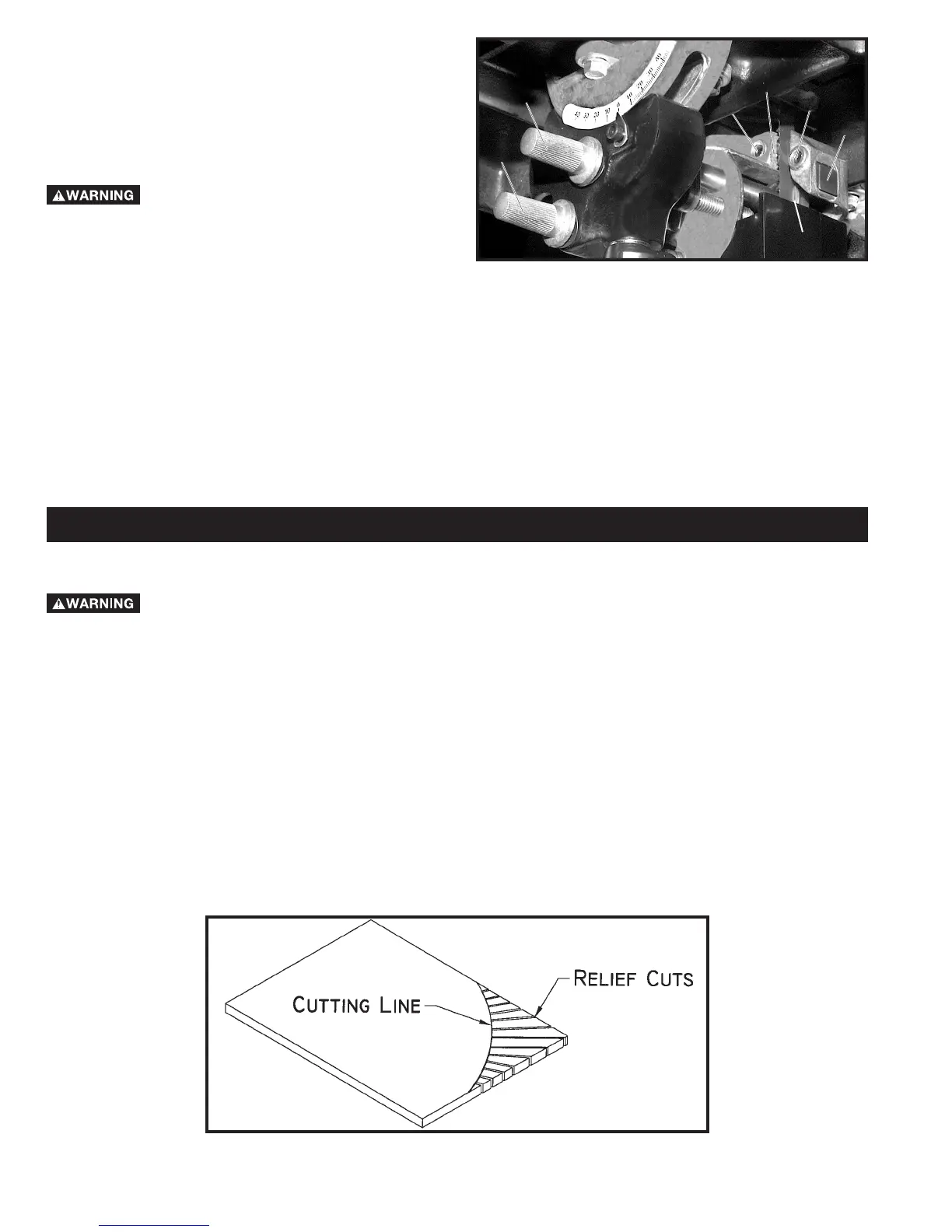 necessary to repeatedly back up and cut a new kerf, a narrower blade, a blade with more set, or additional relief cuts