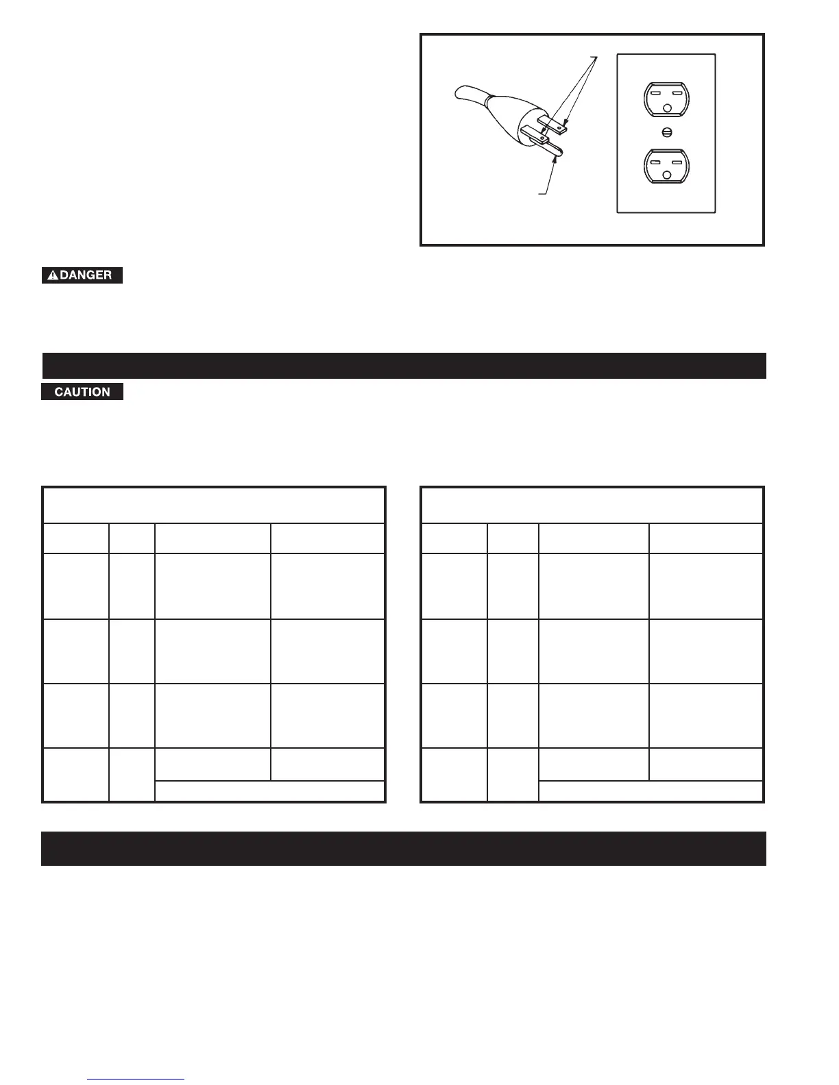 extension cord which has a 3-prong grounding type plug and matching receptacle which will accept the machine’s