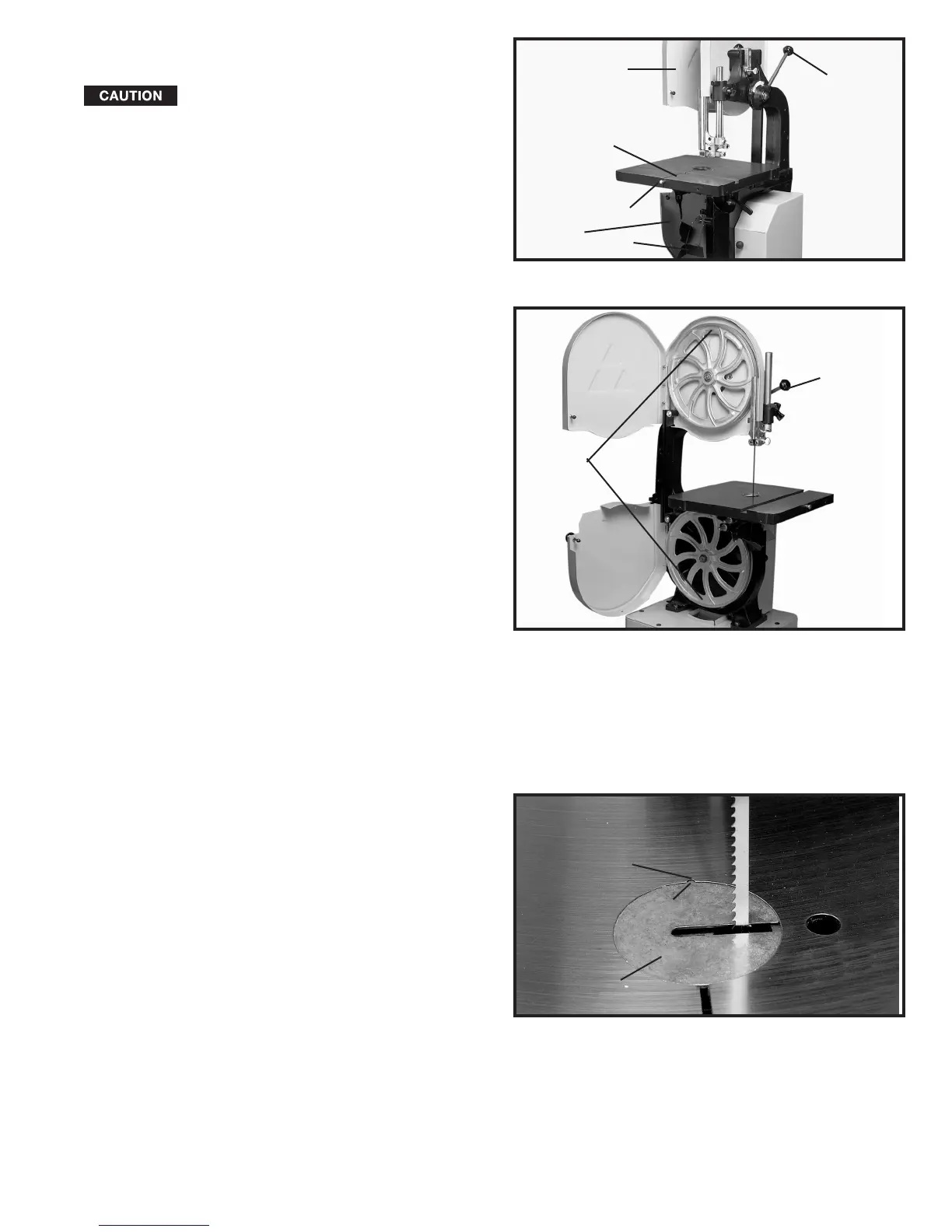 ADJUSTMENTS” to adjust blade tension and tracking.