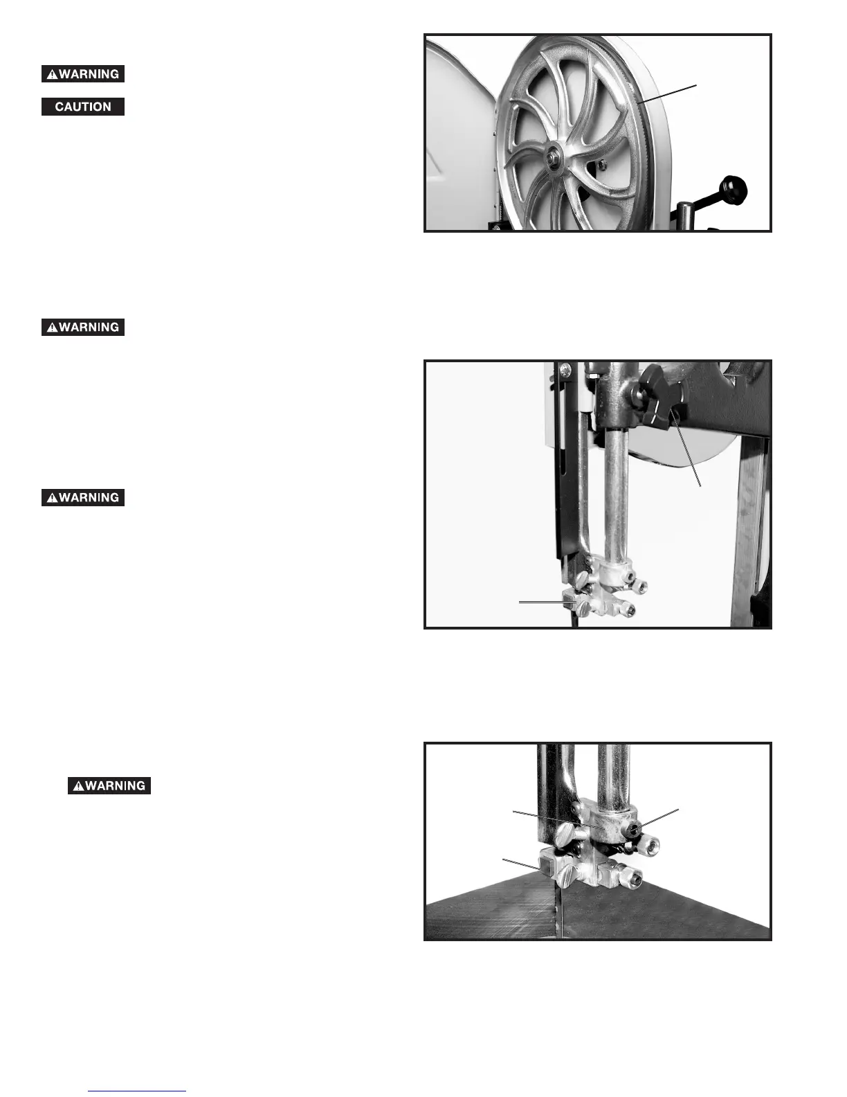 MAKE SURE THAT THE BLADE GUIDES AND BLADE