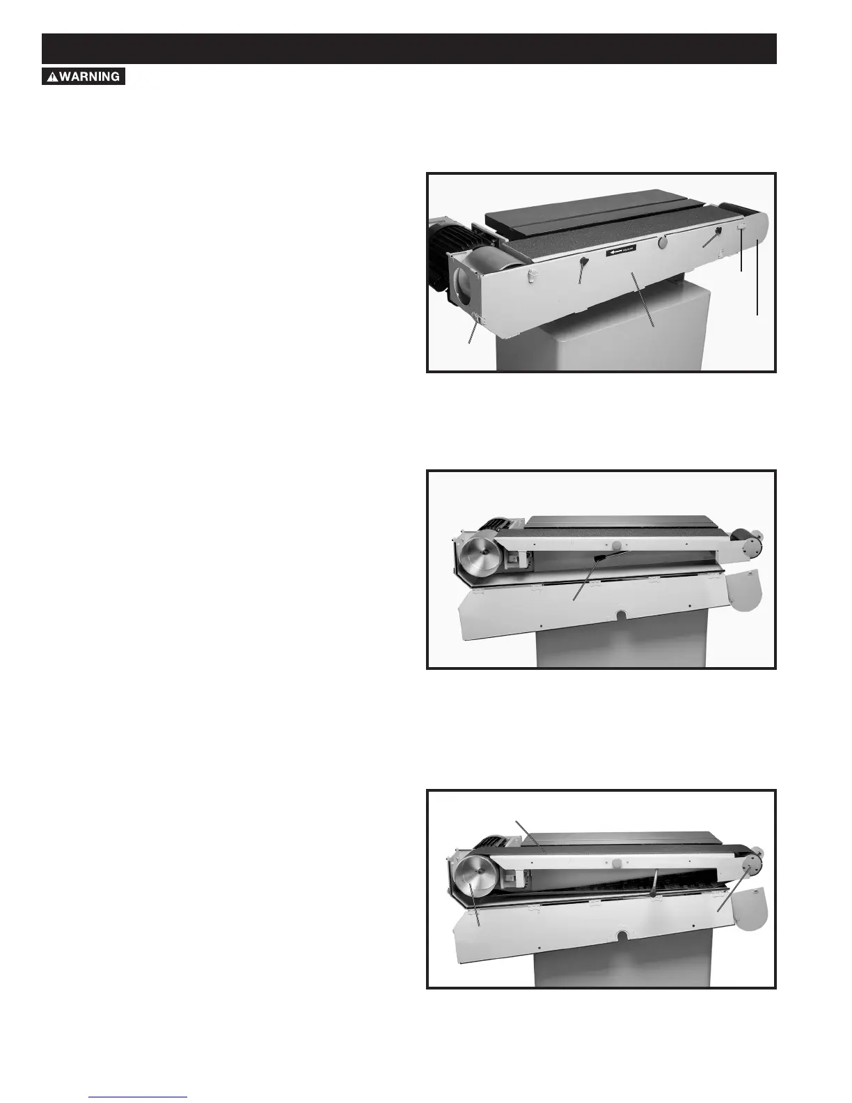 (H) and (J) Fig. 9. Make sure the belt is centered on the