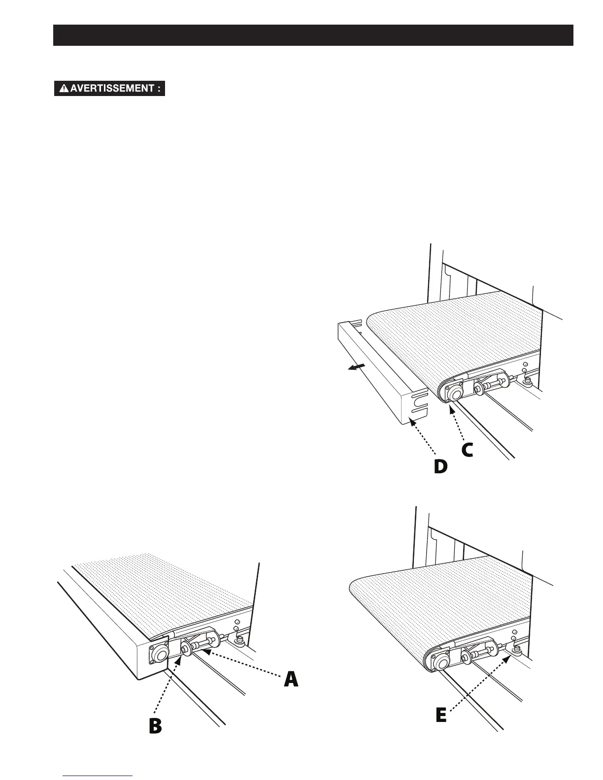 courroie (B) jusqu’à ce qu’ils soient suffisamment