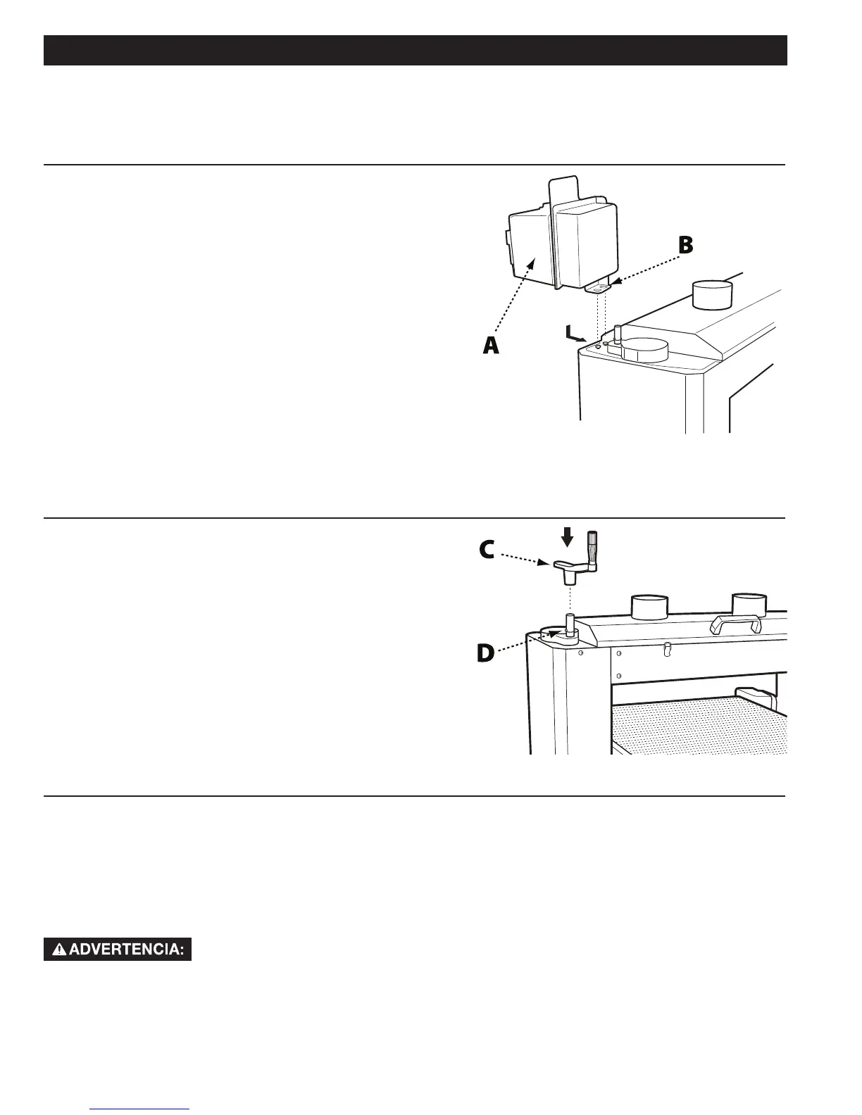 1. Instale la manivela de elevación de la mesa (C) alineando la