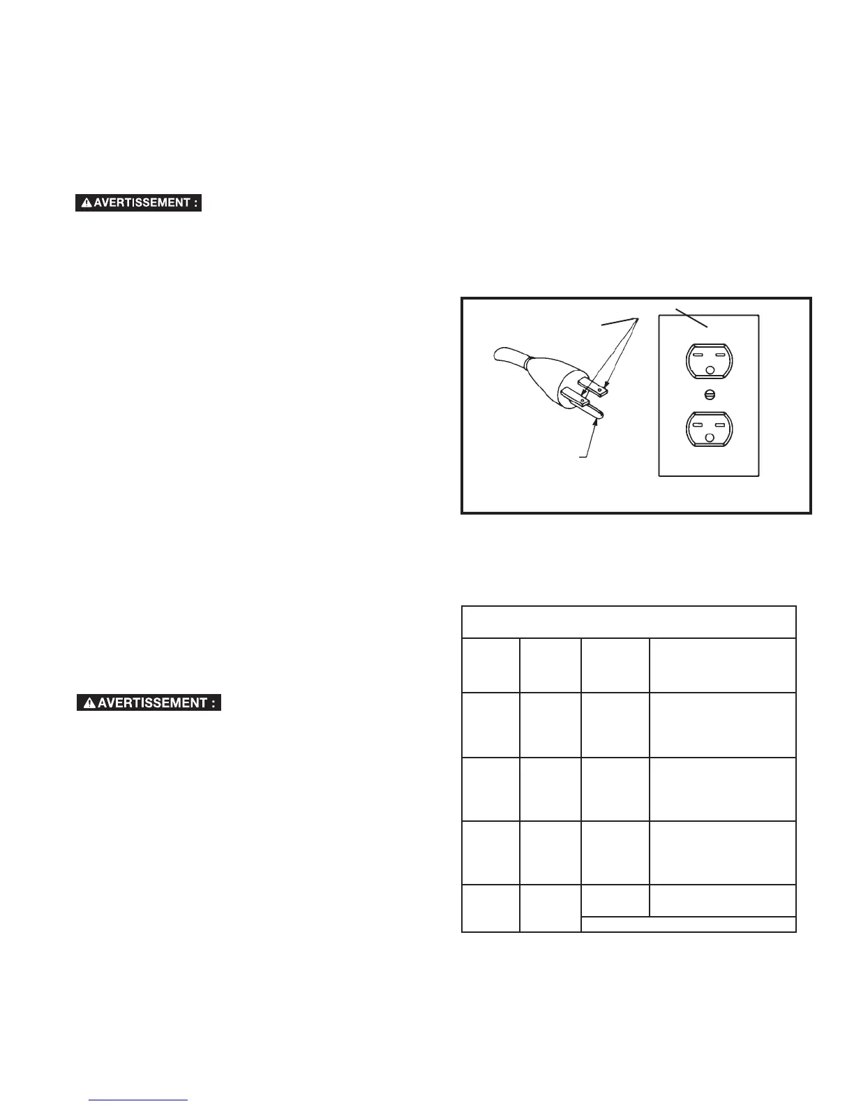 même configuration que celle de la fiche. Aucun adaptateur n’est offert pour cet appareil et ne devrait être utilisé avec
