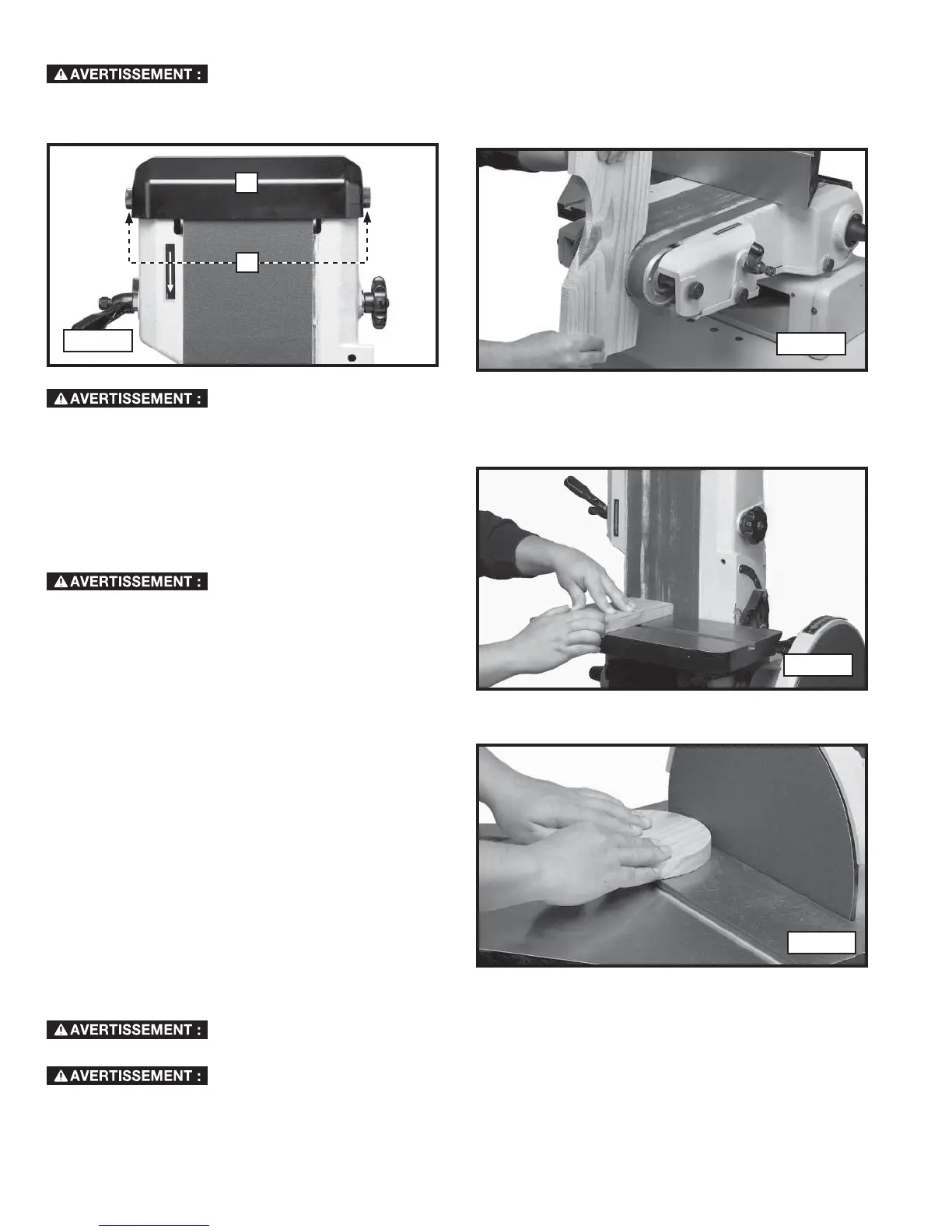 éviter d'emprisonner la pièce ou vos doigts entre la table et la bande abrasive.