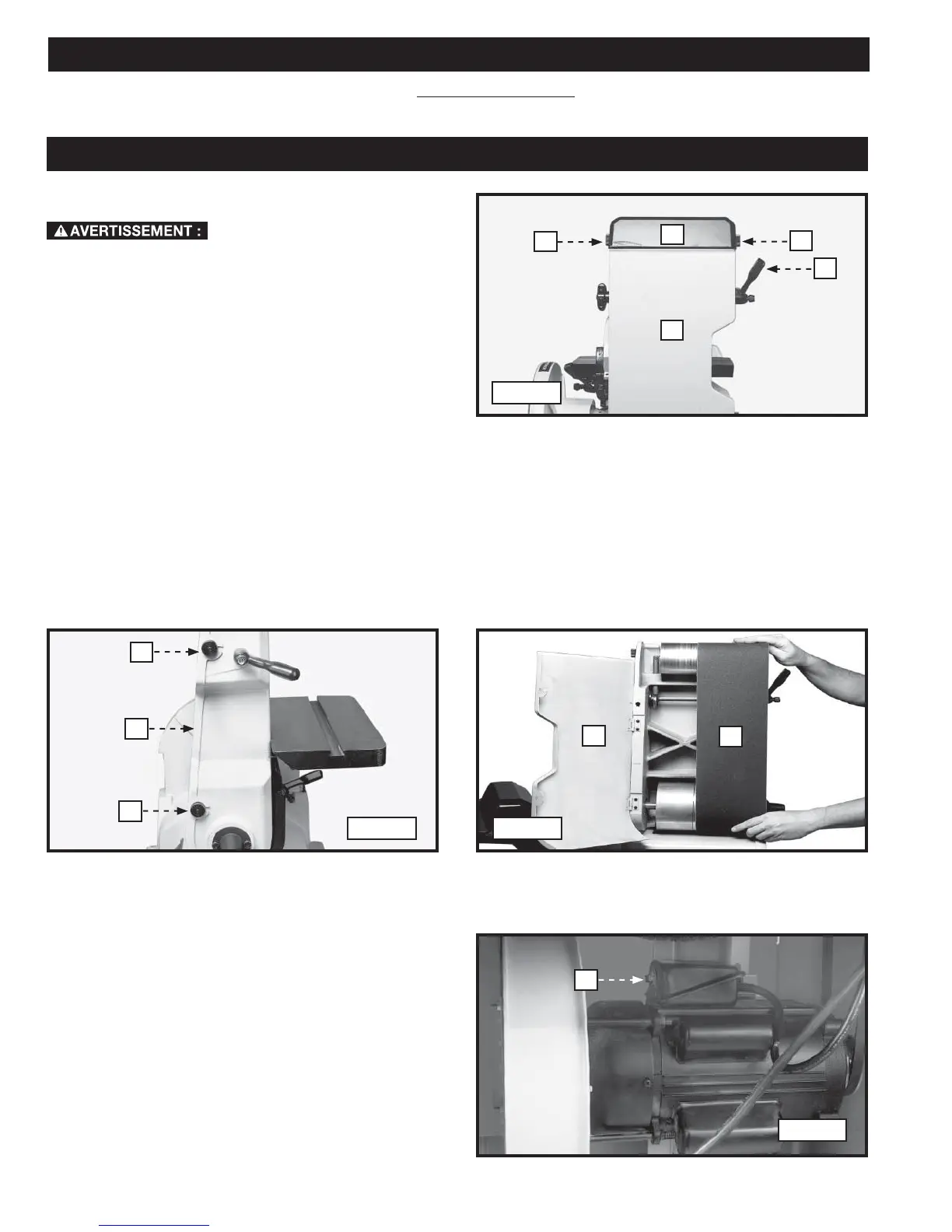 7. Vérifier le centrage de la bande avant de mettre la ponceuse sous tension..