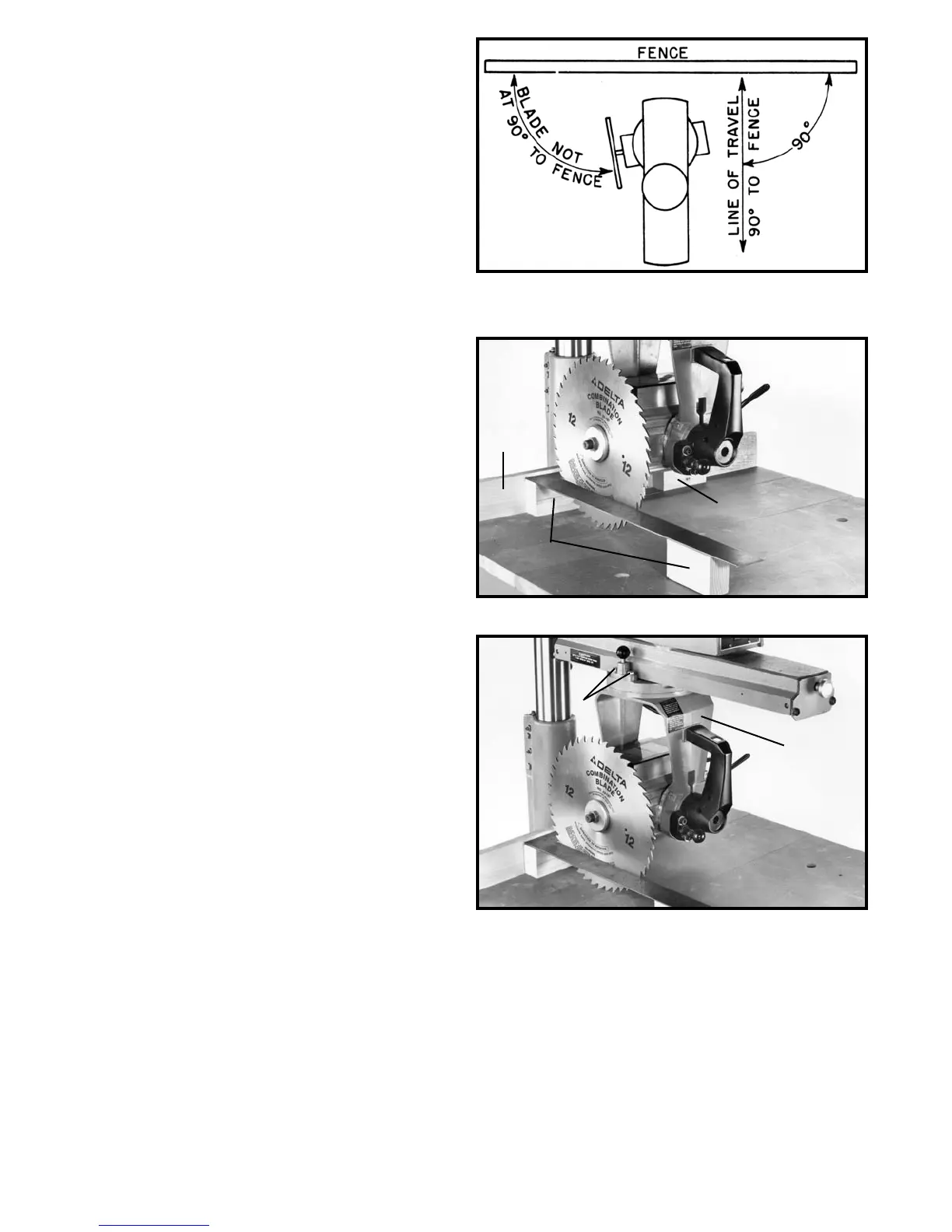 aligned at 90 degrees to the fence, the blade itself may