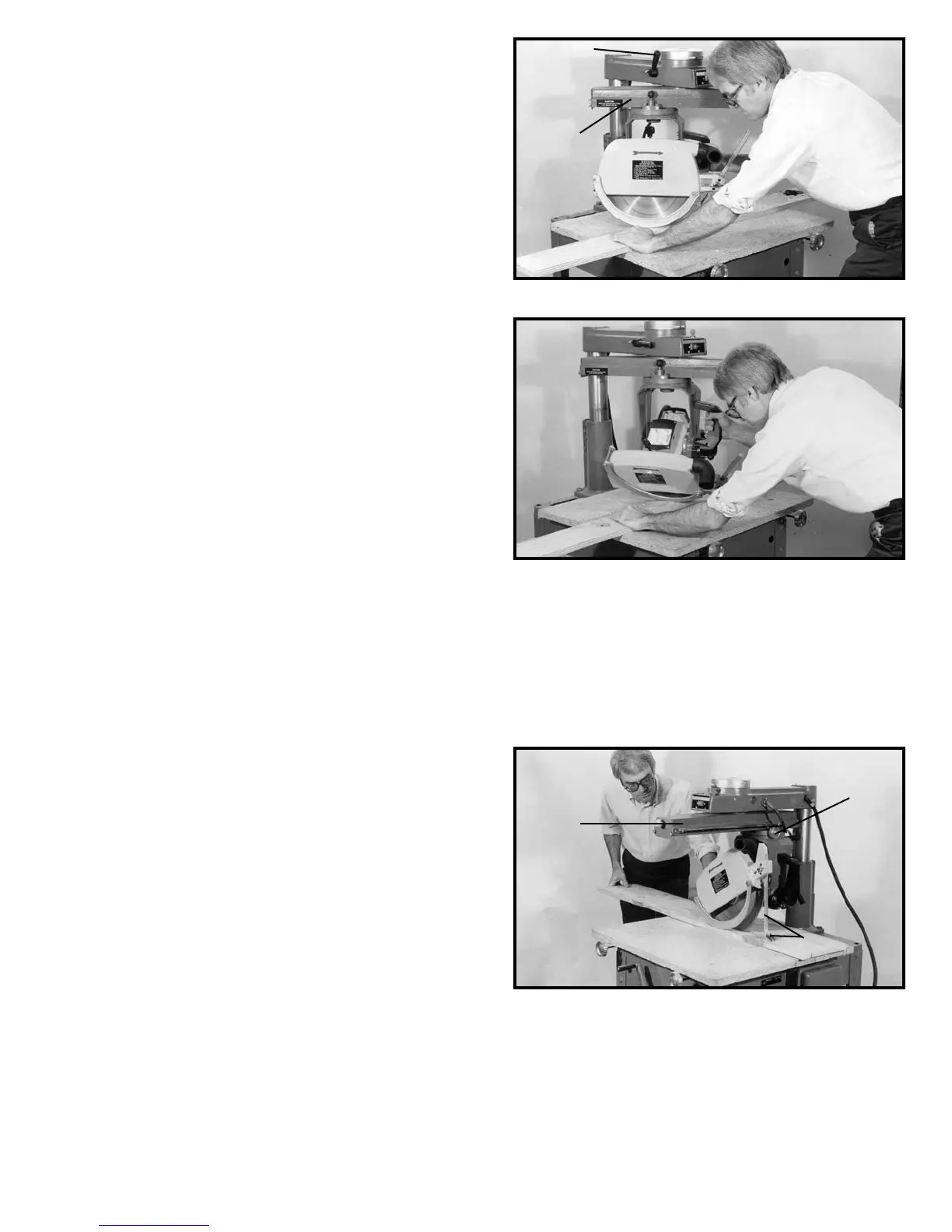 shows a typical out-ripping operation on the radial saw.