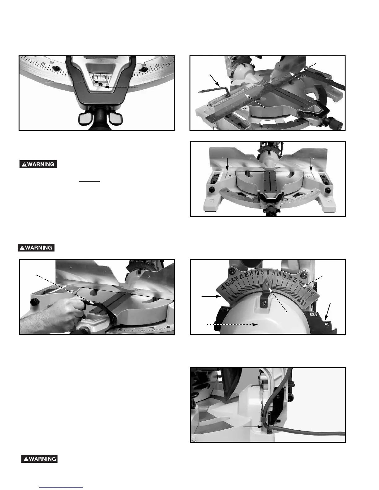 position the saw blade at 0°, 33.9° and 45°. Refer to the