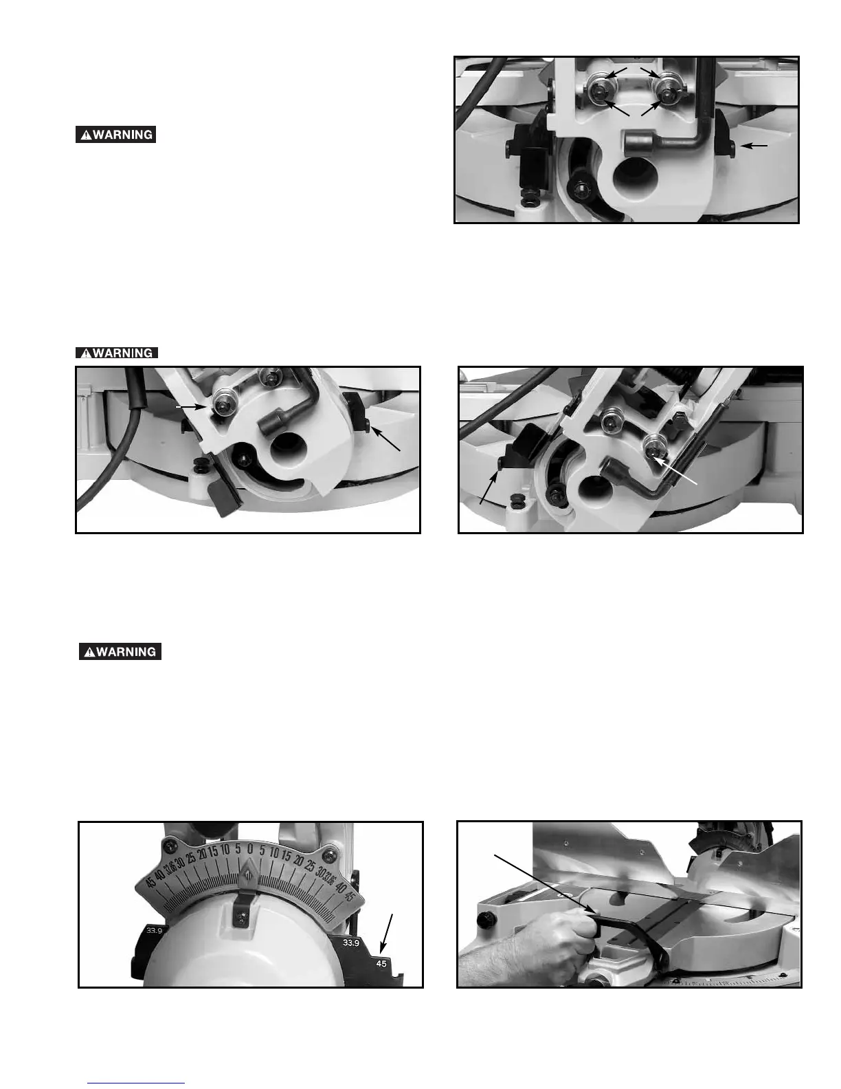 ADJUSTING 0°, 33.9°, AND 45° BEVEL POSITIVE STOPS