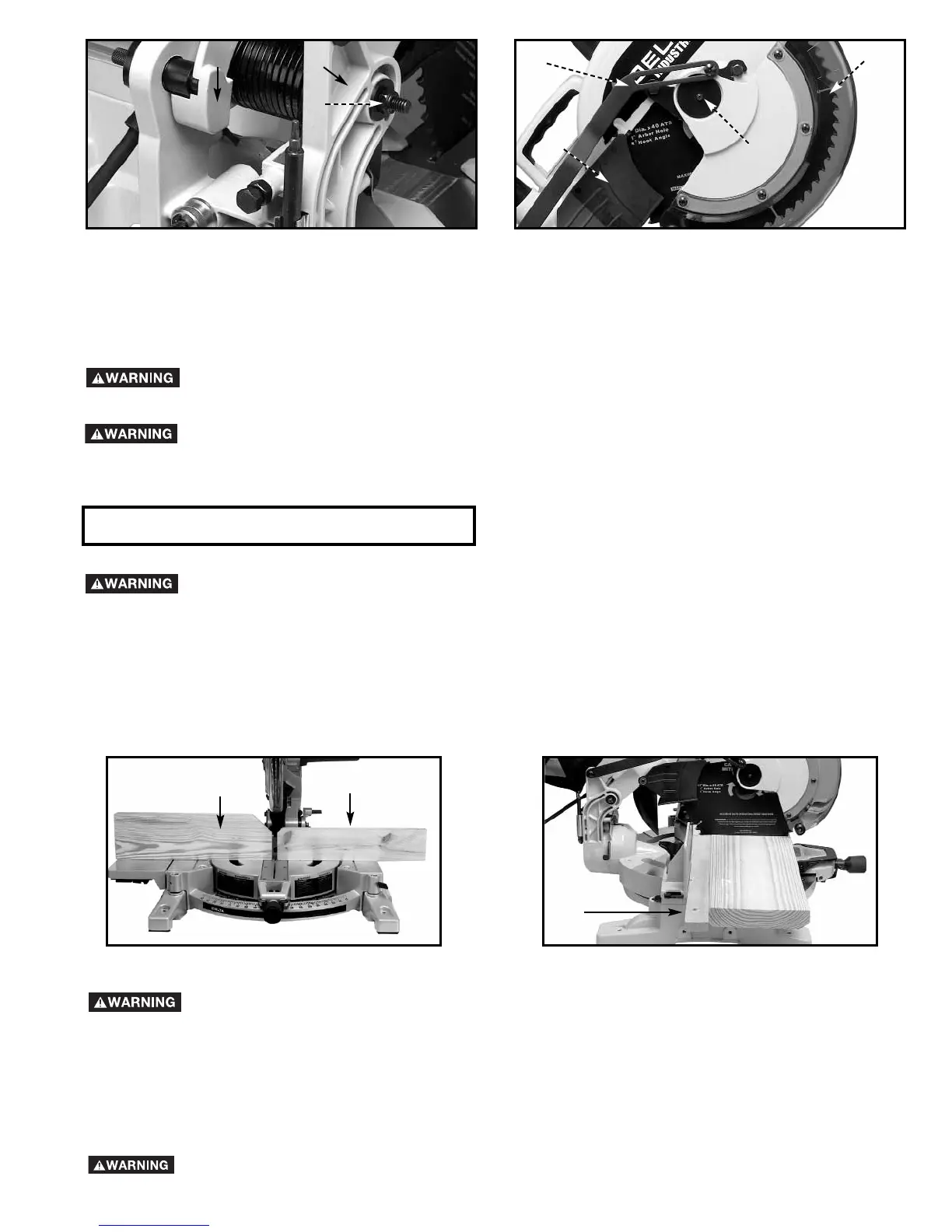 fence must be removed for all bevel cuts (blade tilted).